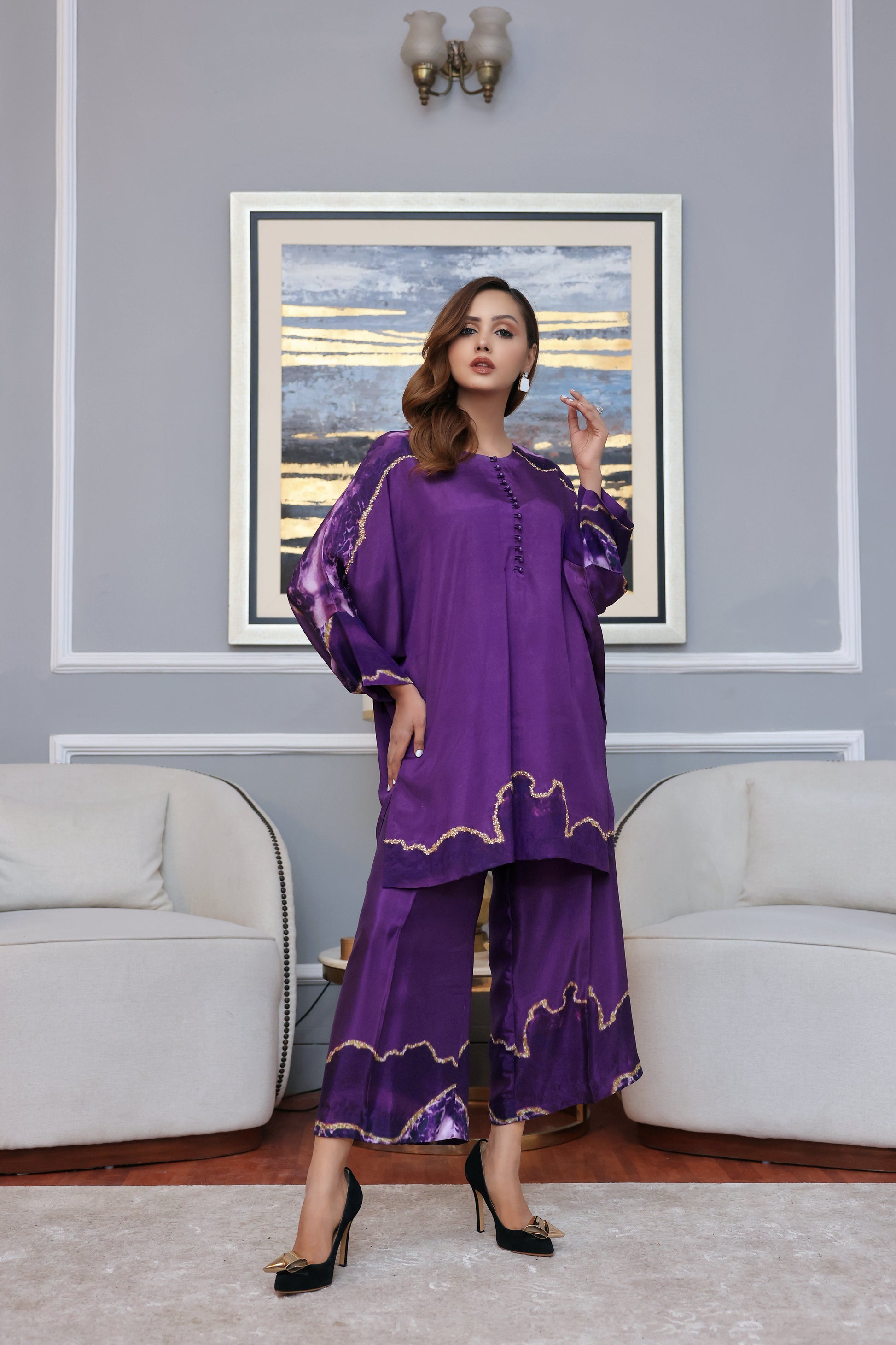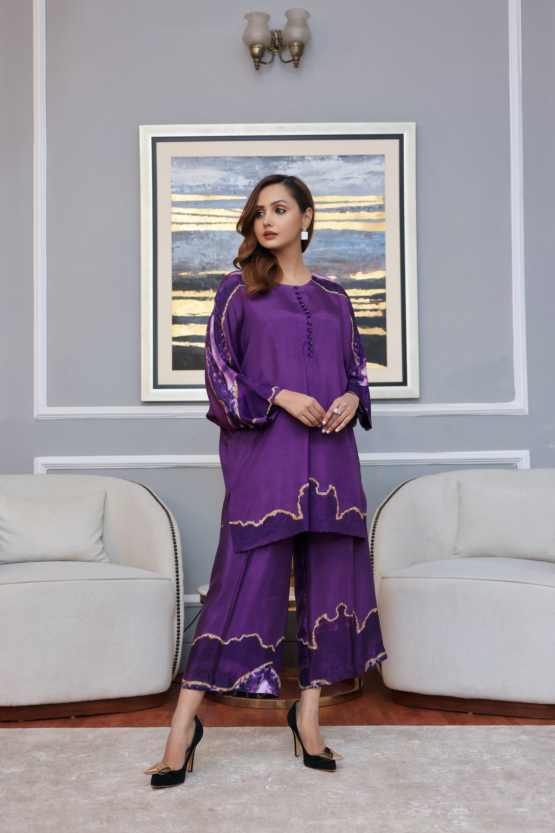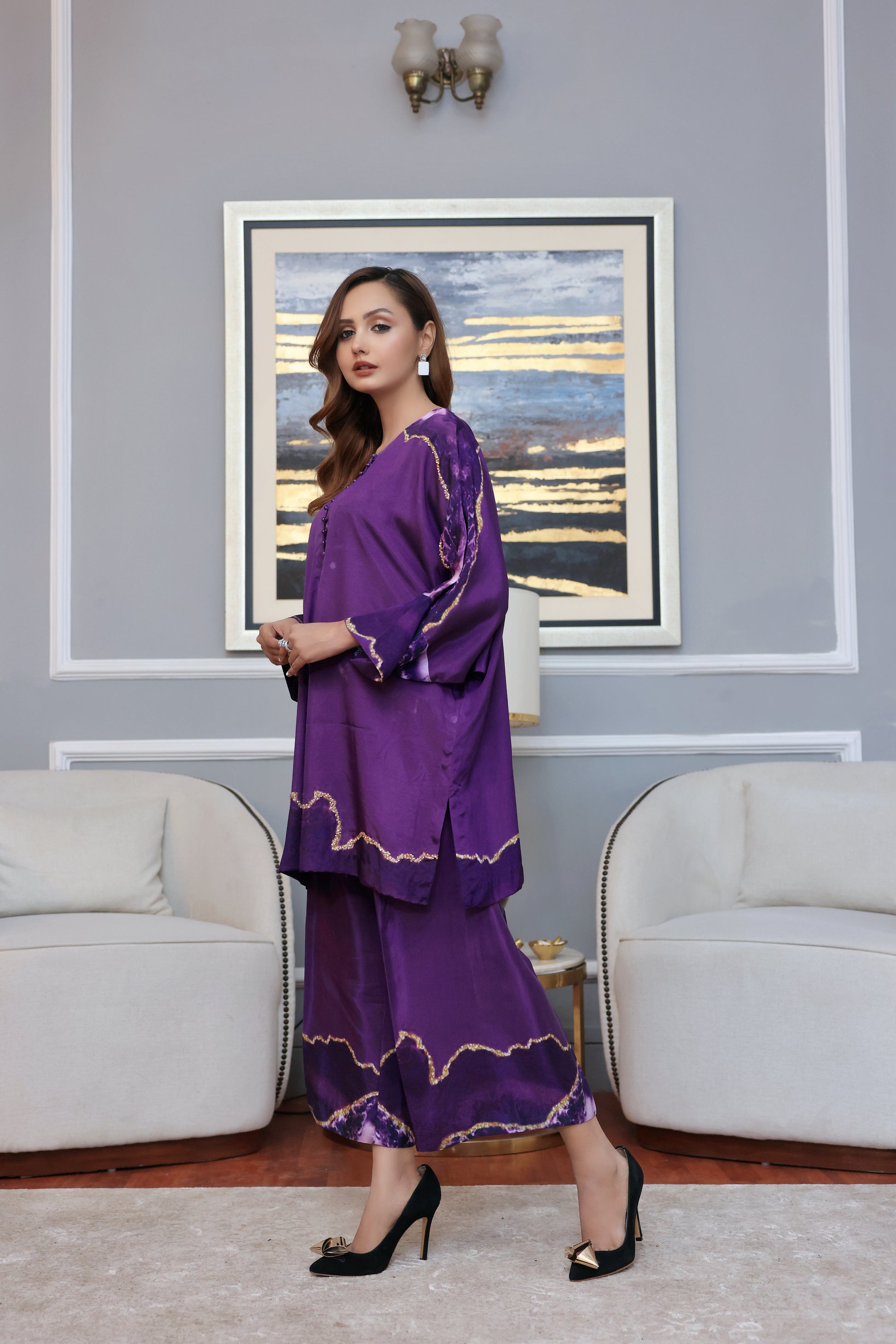 2 Piece Digital Print Fabric pure grip silk. Beautiful digital print embelished with sequence and beads
