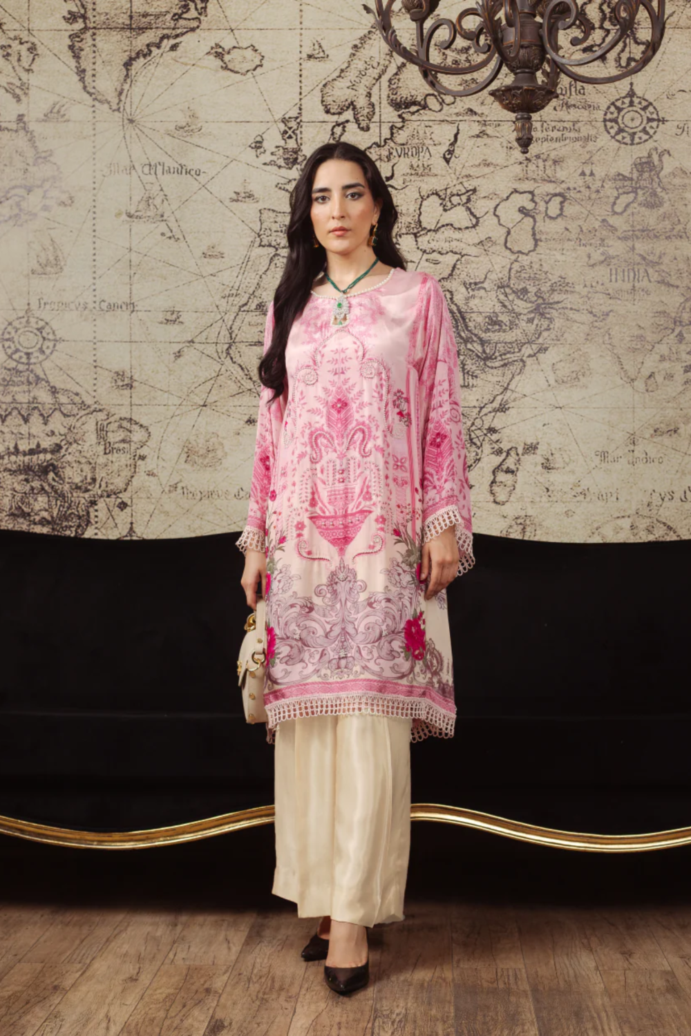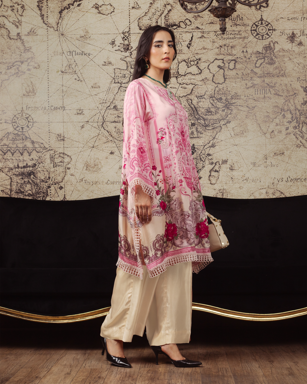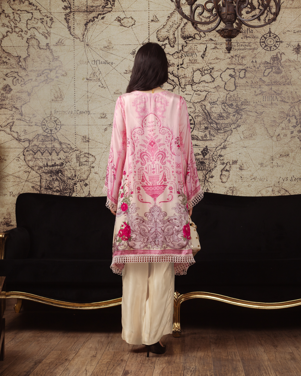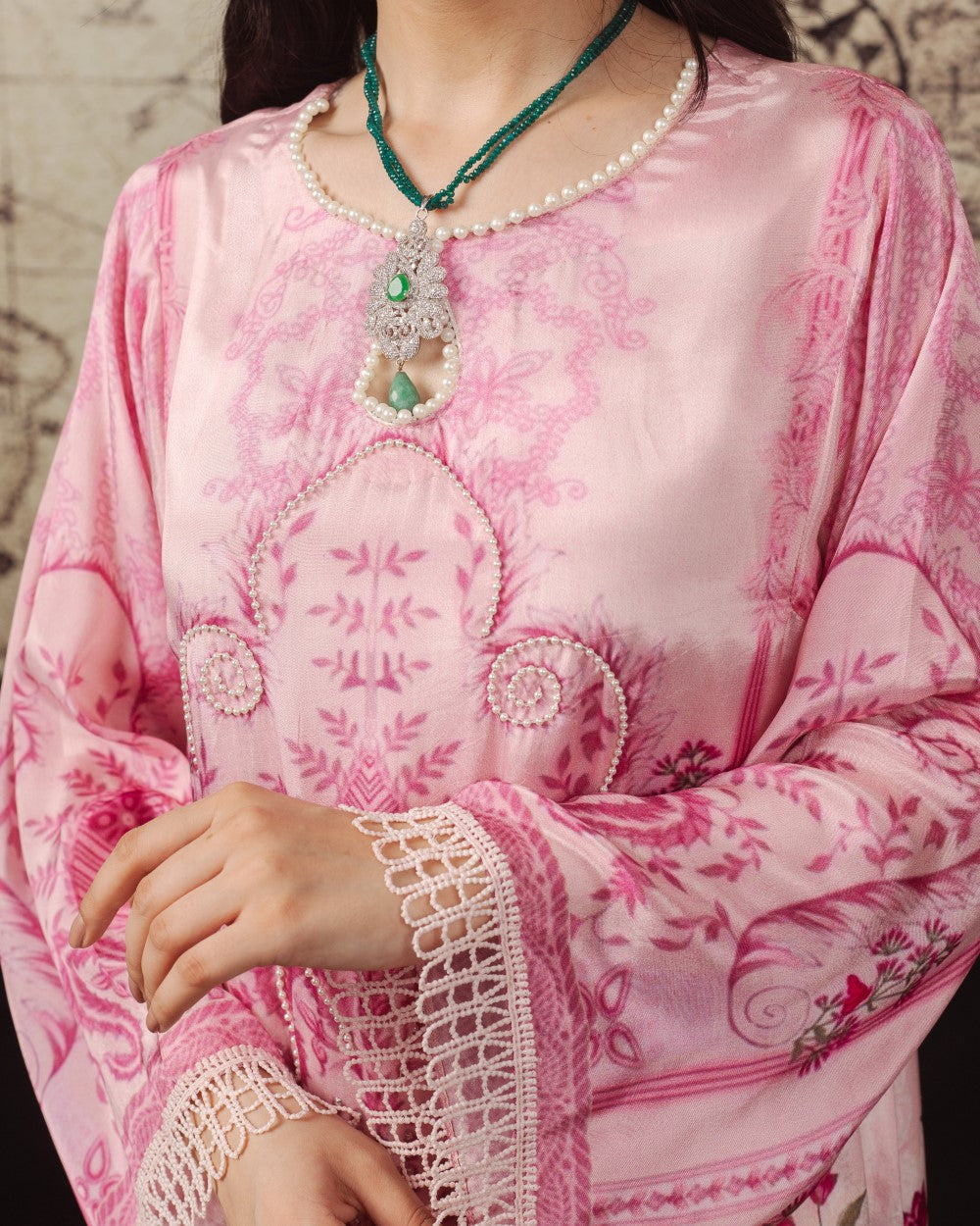 Grip Silk Digital Print embelished with pearl work & lace trims.
