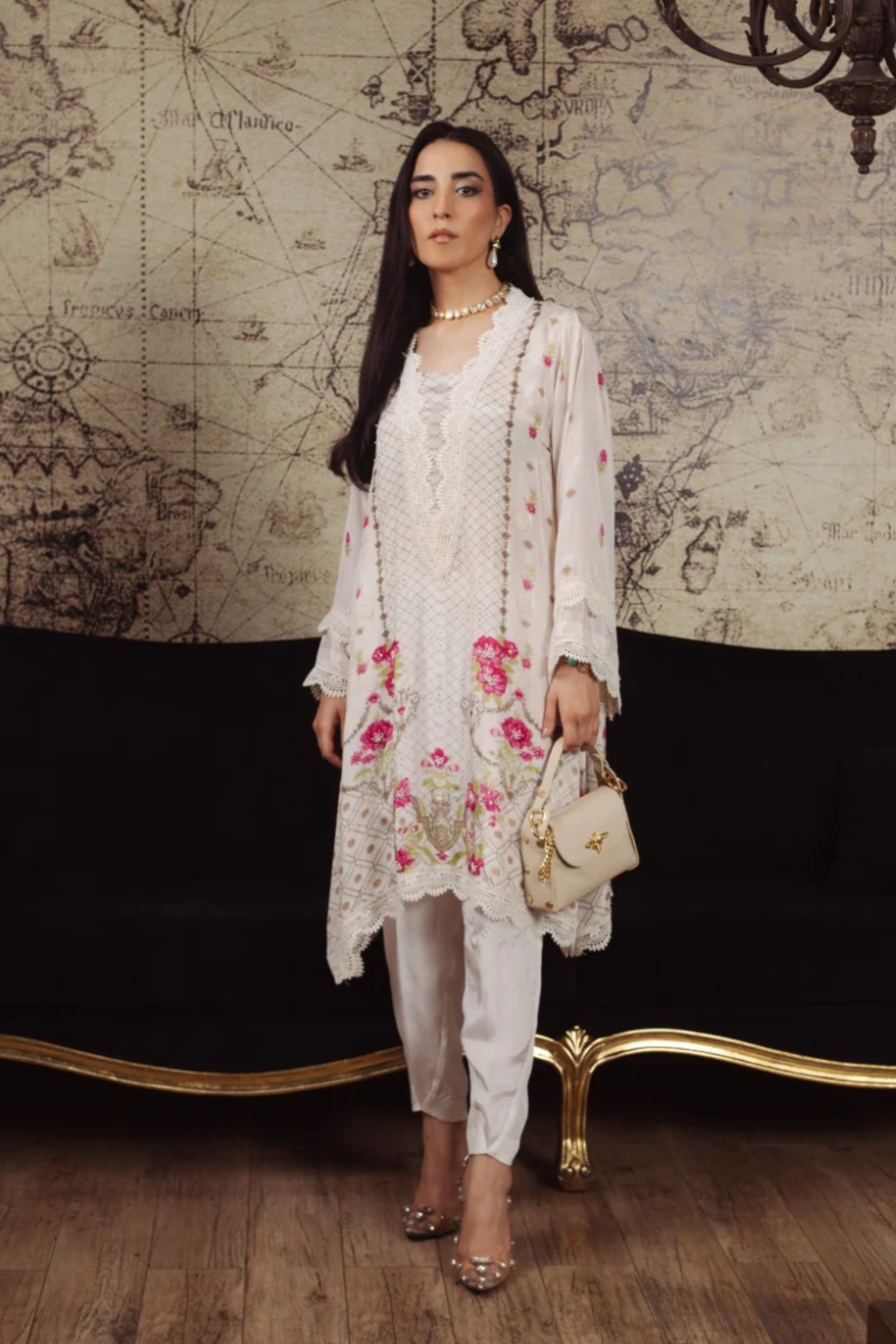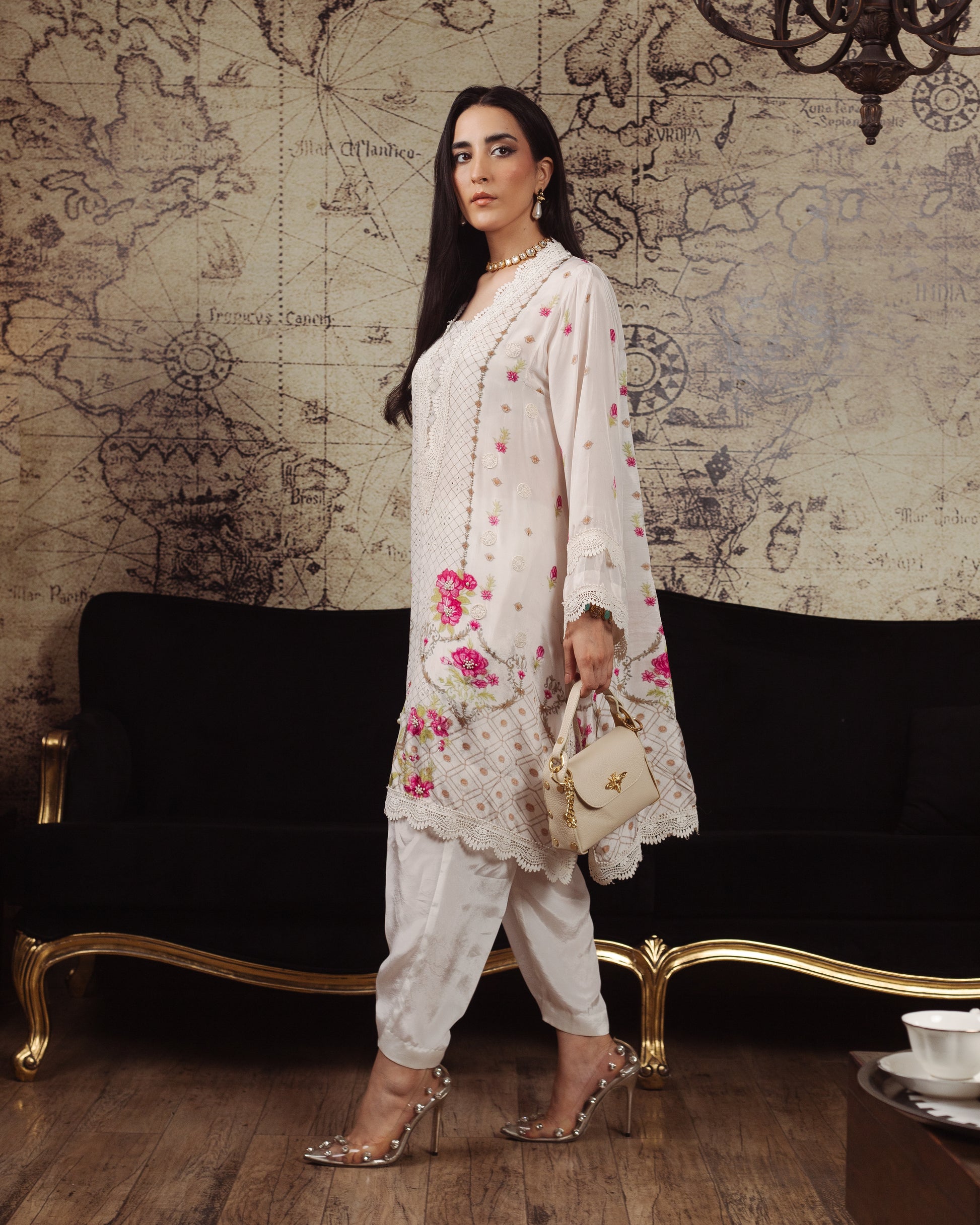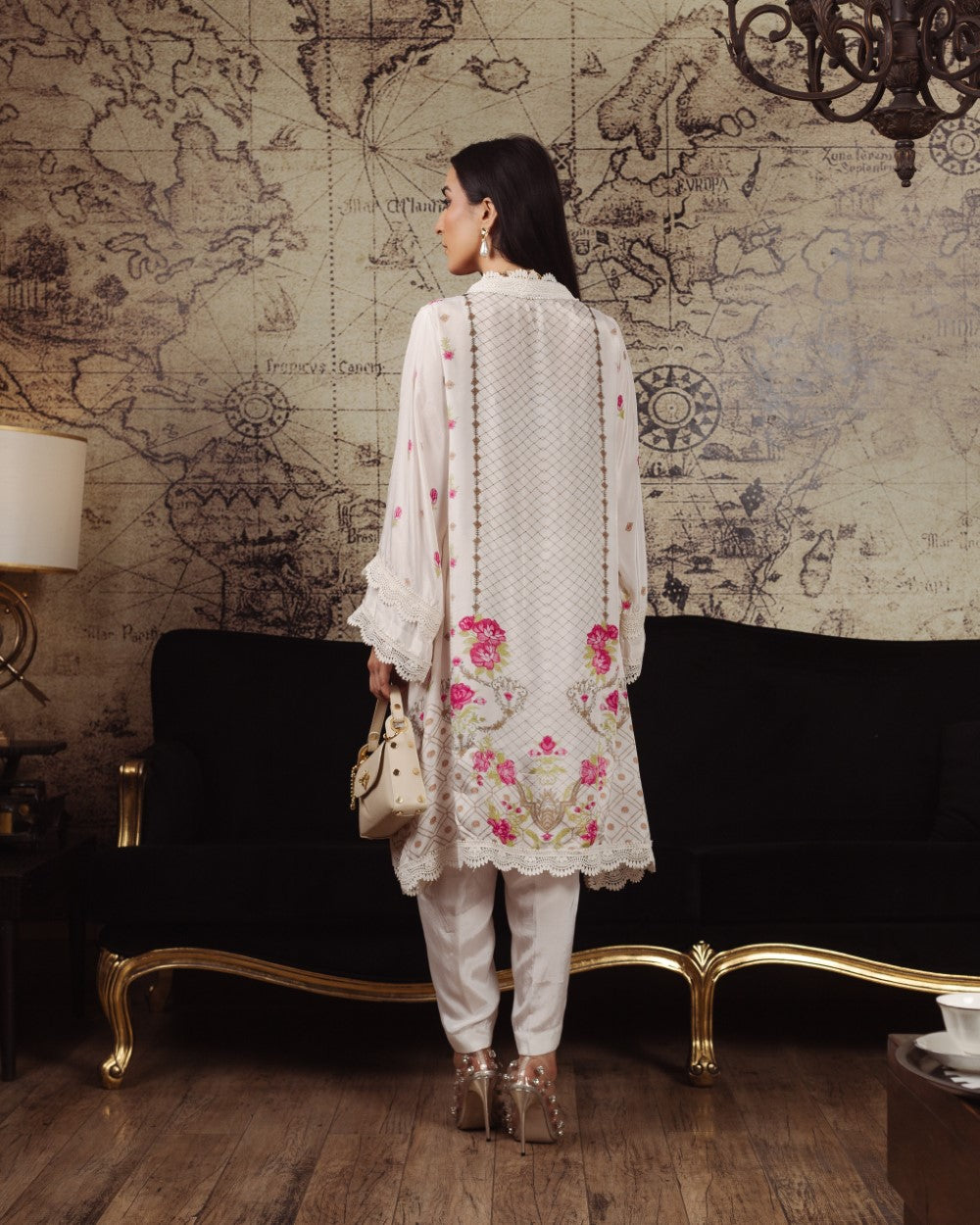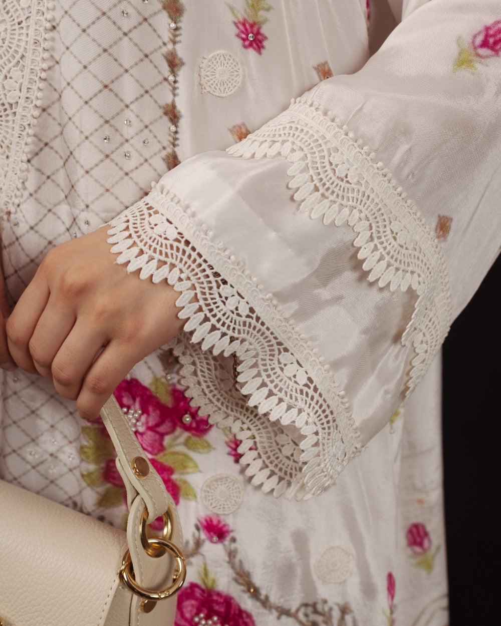 Grip Silk Digital Print embelished with pearl work & lace trims.