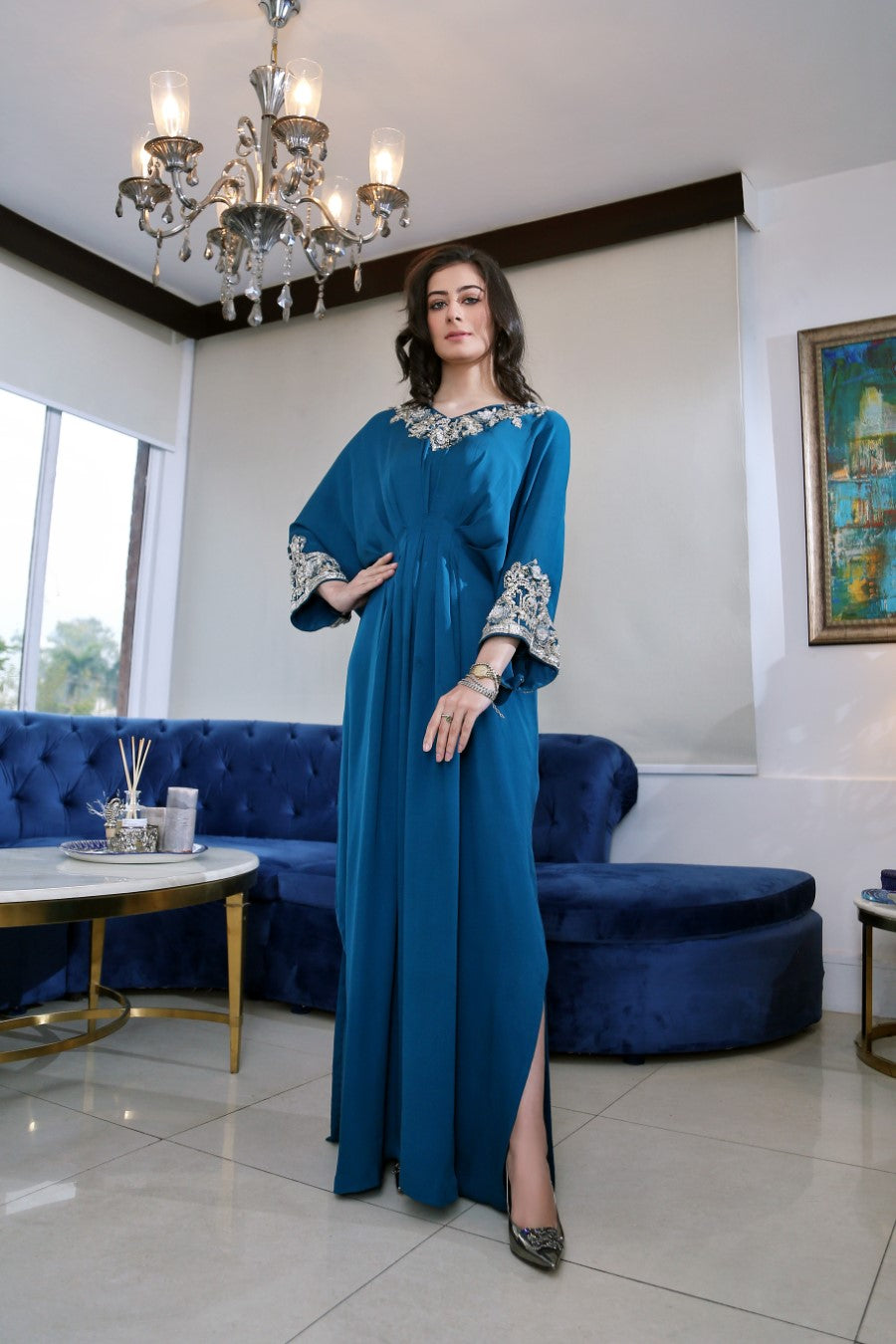 Product Description: Iris brings you an effortless blend of traditional with contemporary. Kaftans made from the finest silk and grip that are sure to spice up your style game dinners to weddings.