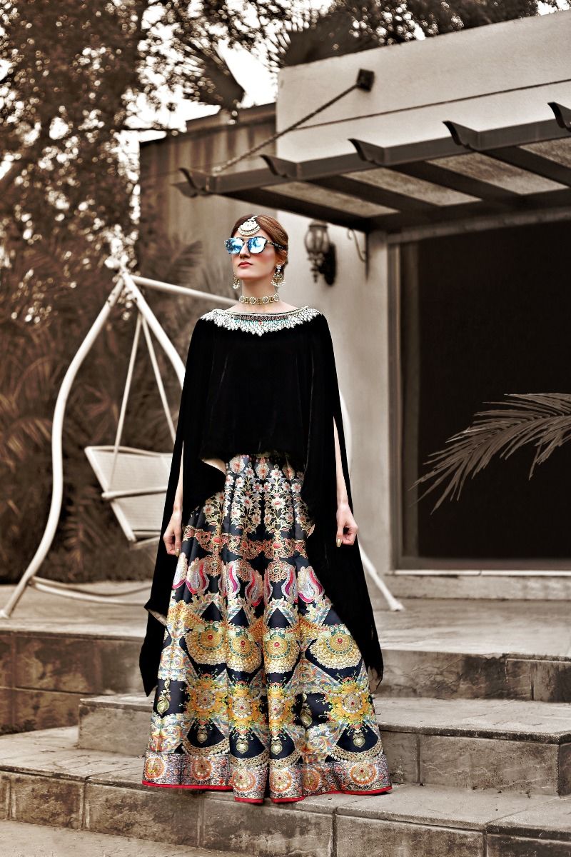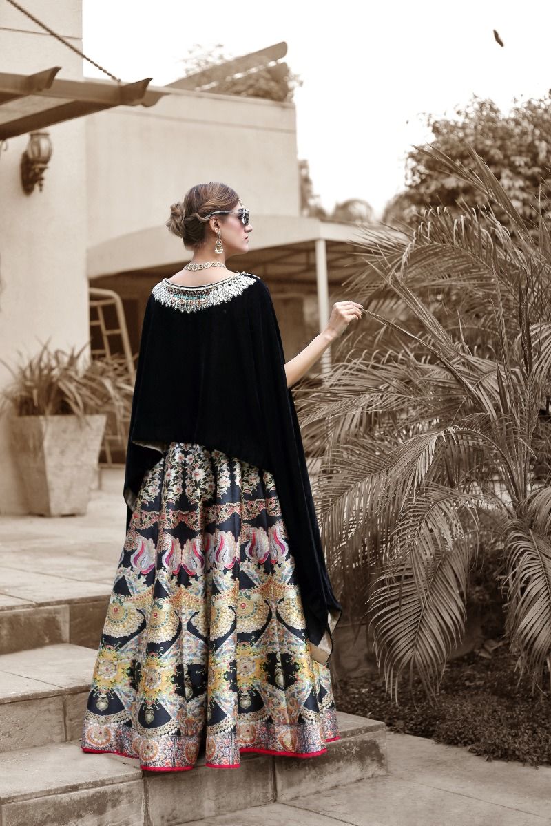 Exude elegant femininity in our contemporary digital printed silk lehnga's paired with a meticulously hand embellished draped velvet shirt. Sarah Salman brings to you ensemble's that work for both day and night occassions in our latest collection "Jewels".
