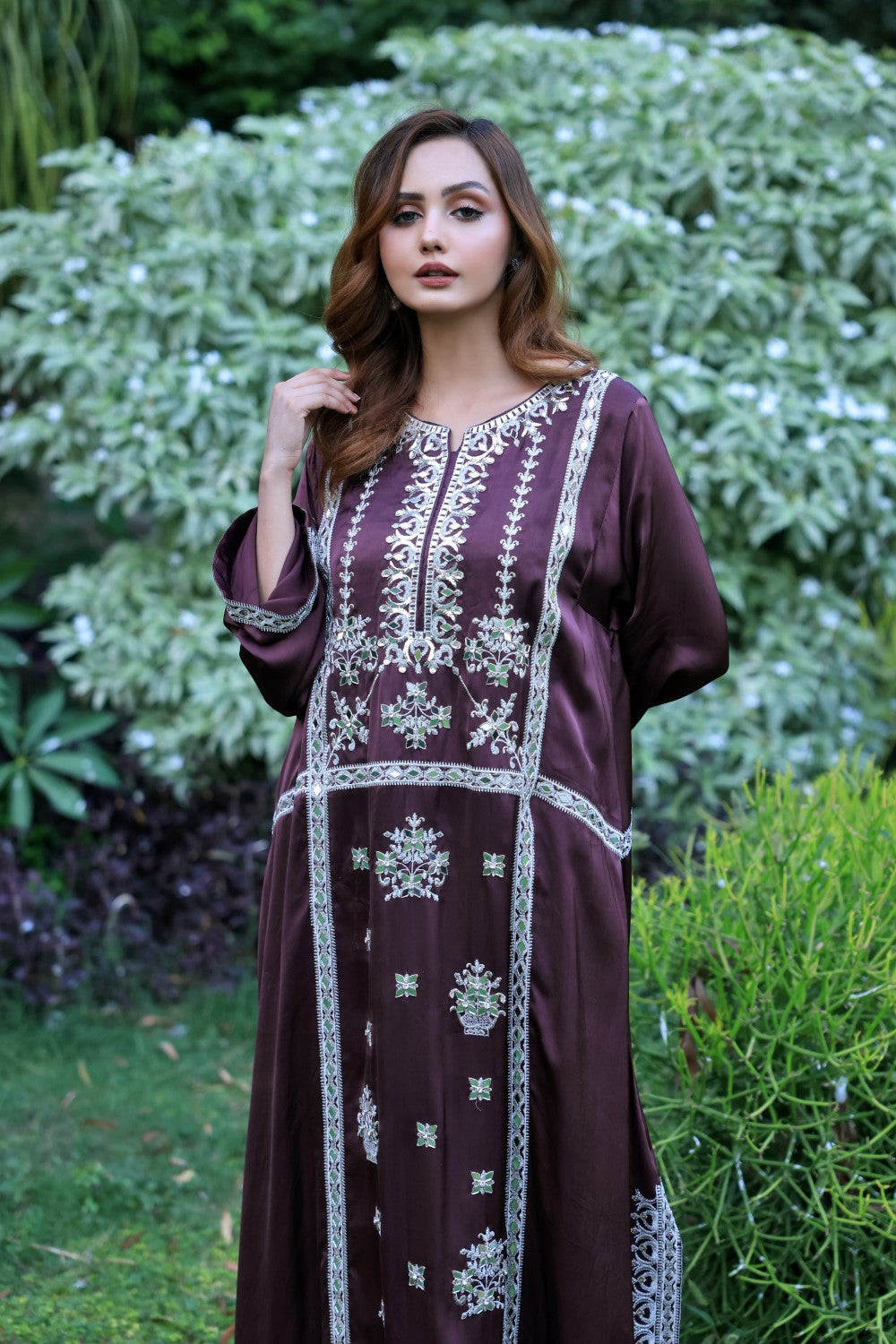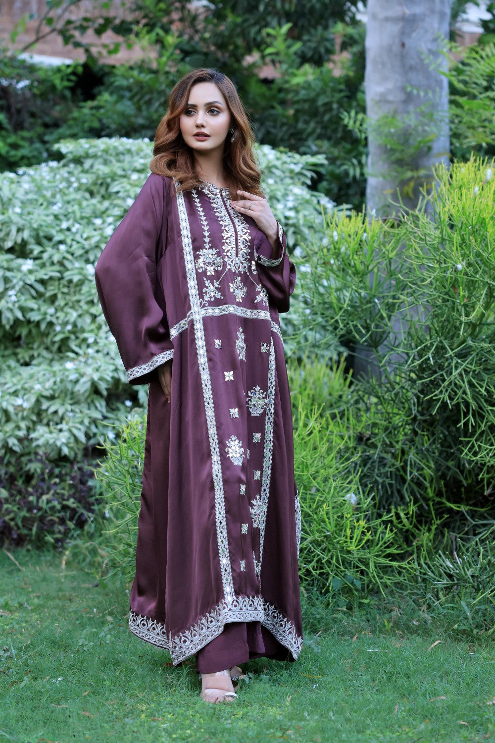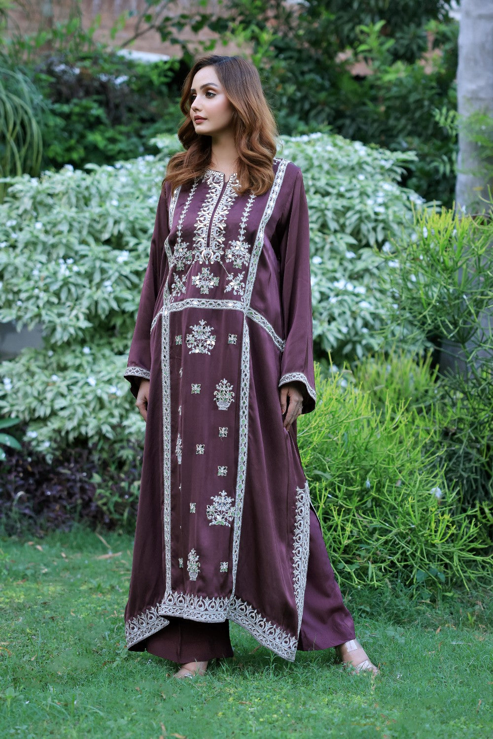 2 Piece Long Pure Silk A Line Loose Shirts With Beautiful Mukesh, Mirror And Hand Work, Dupatta (Optional Organza Or Silk)