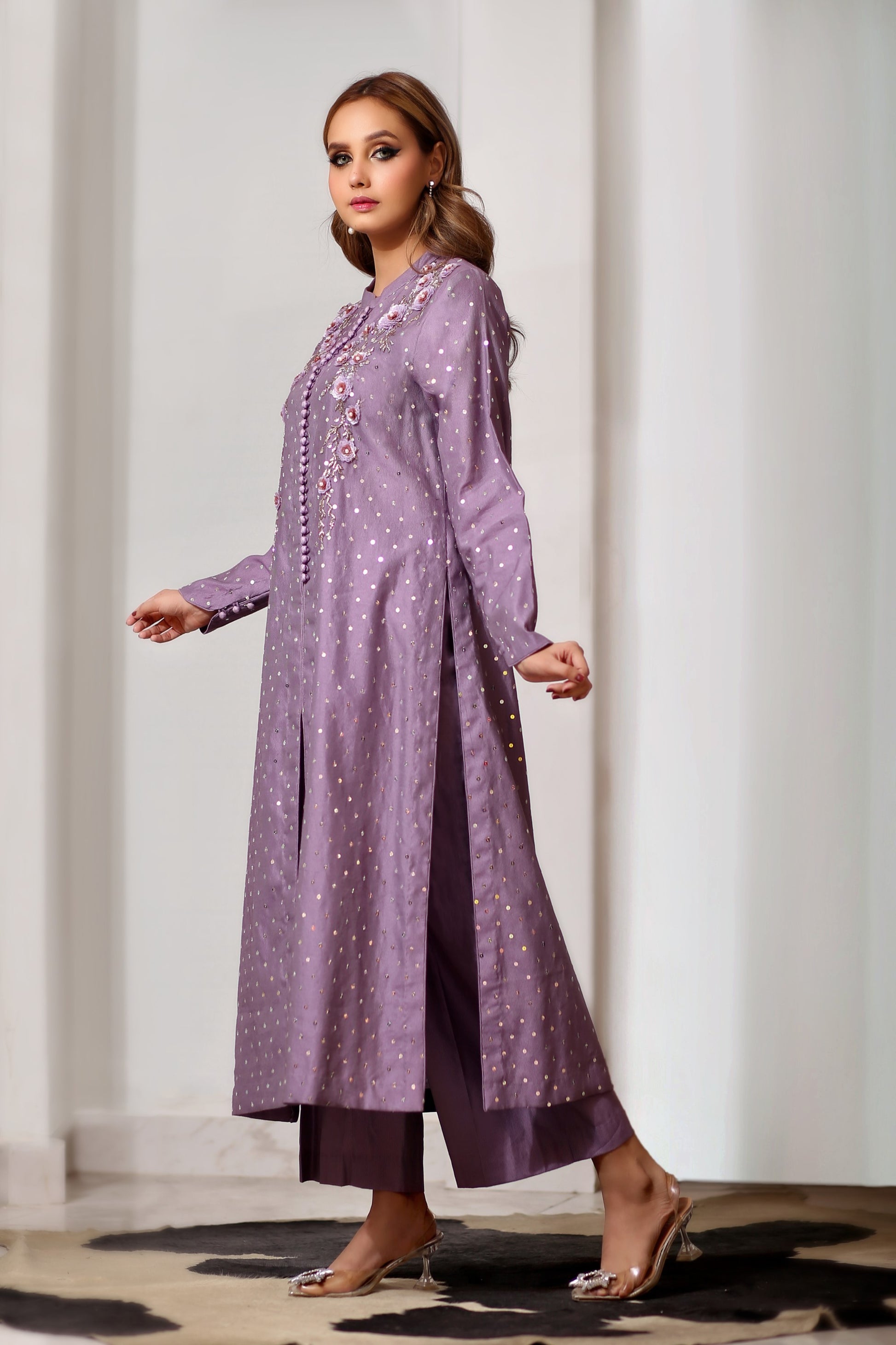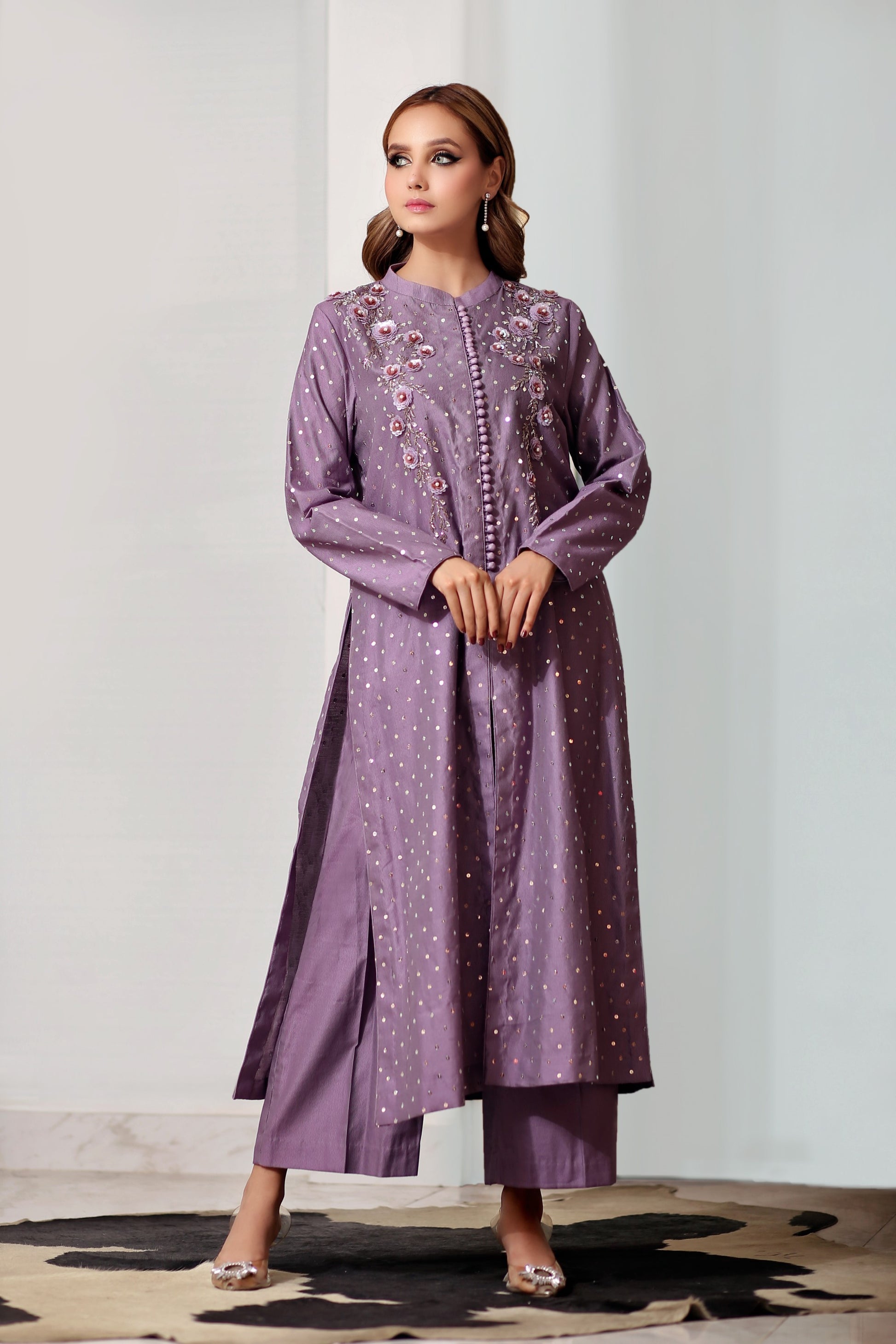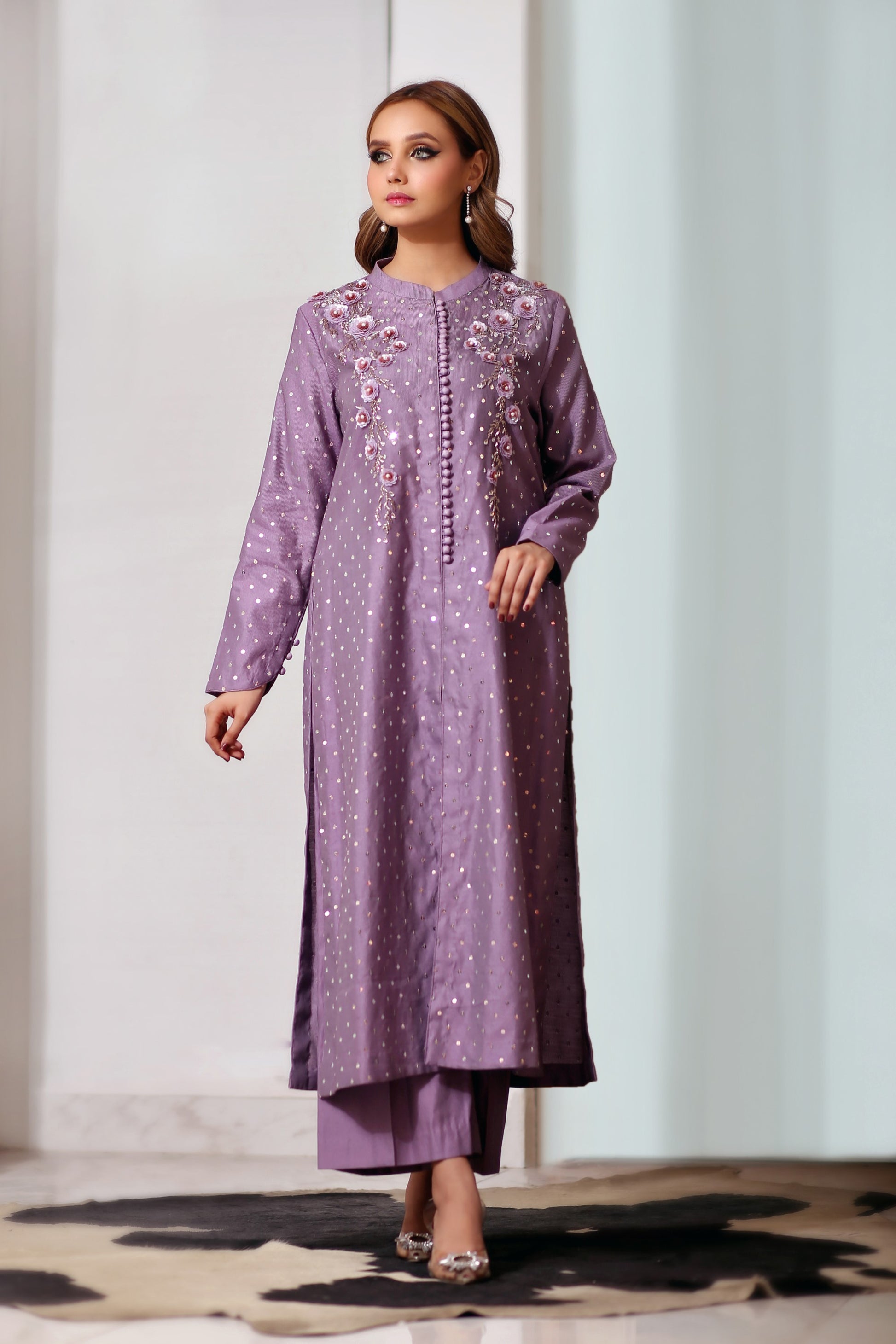 Pieces: 3 pieces; Shirt, Dupatta & Trouser Hand Embelishment With Sequence & Swarovski Work