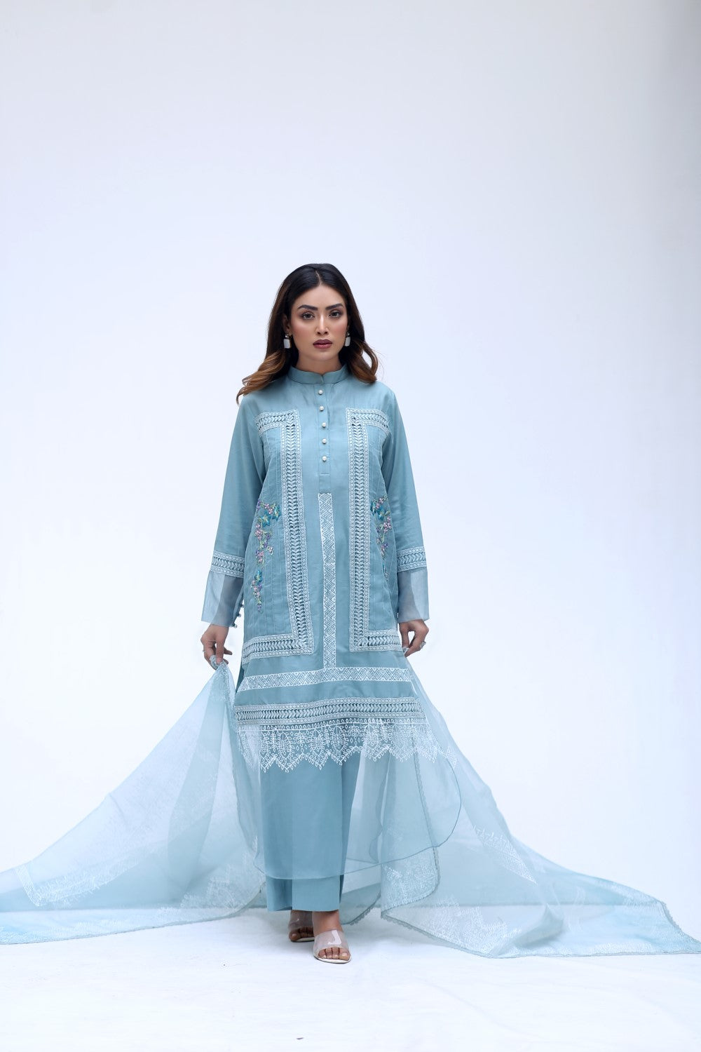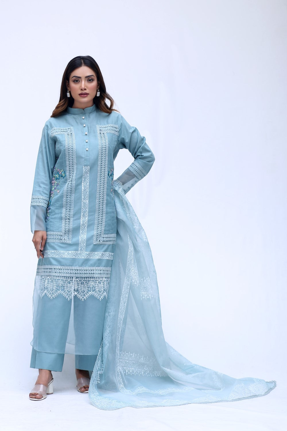 Pieces: 3 pieces; Shirt,Trouser & Dupatta Organza