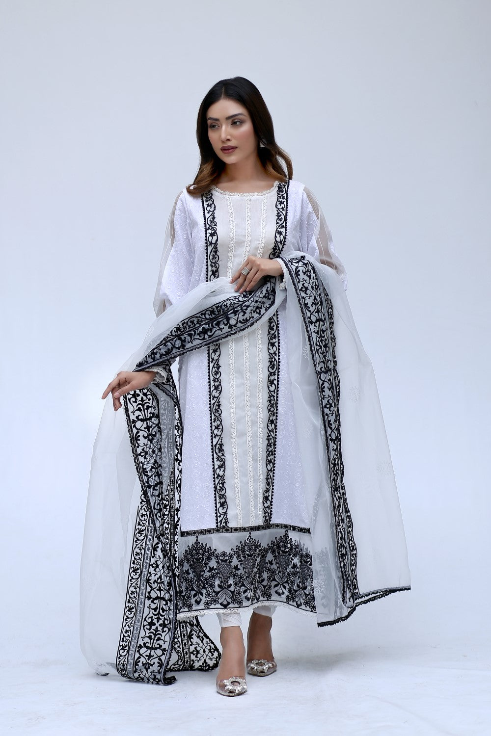 Pieces: 3 pieces; Shirt,Trouser & Dupatta Organza