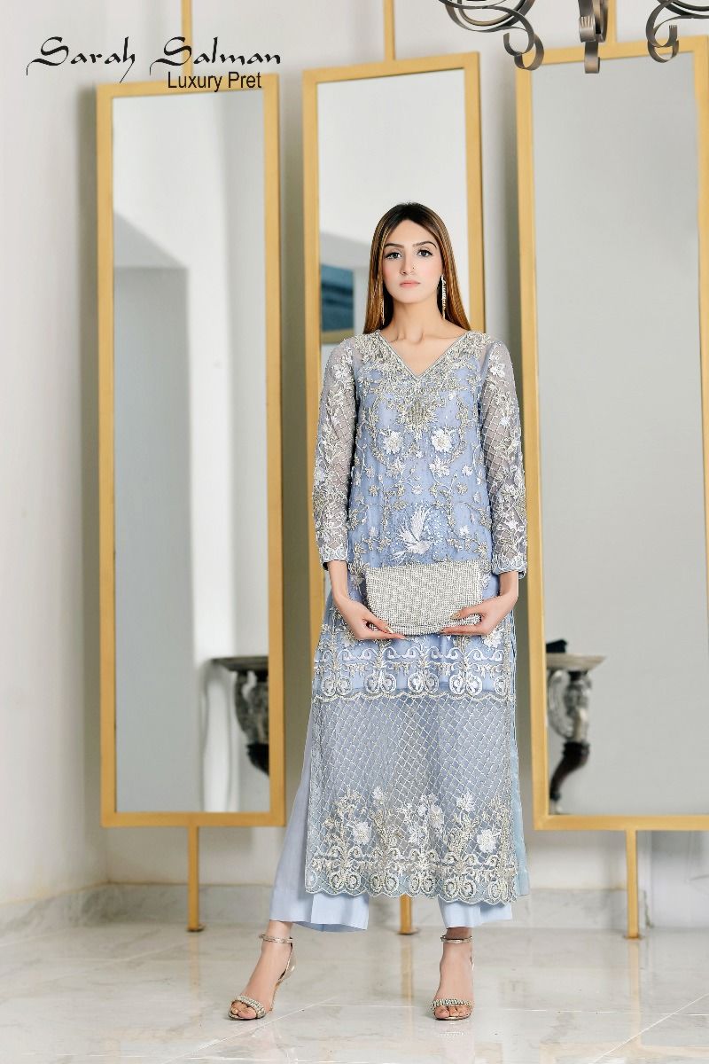 Ice Blue Orgaza & Jamawar Luxury Pret