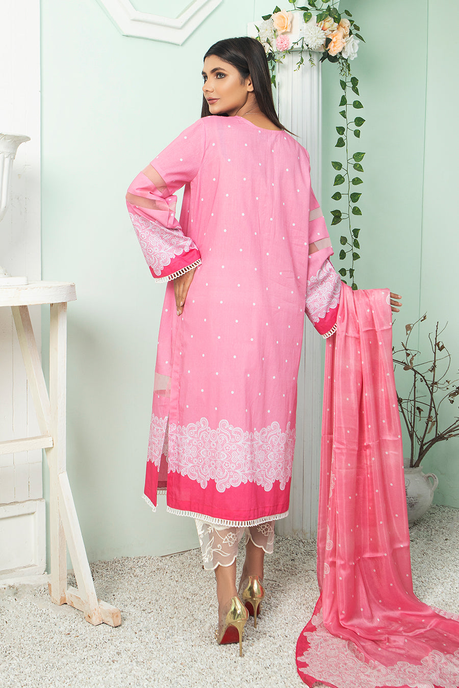 It's time to add a vibrant, fun shade to your wardrobe. A mood-elevator, digitally printed cotton shirt with fine embroidery is paired with a pure silk dupatta to effortlessly take you from a blissful day look to a glamorous night look.