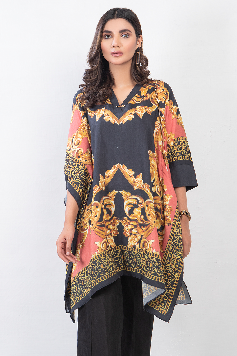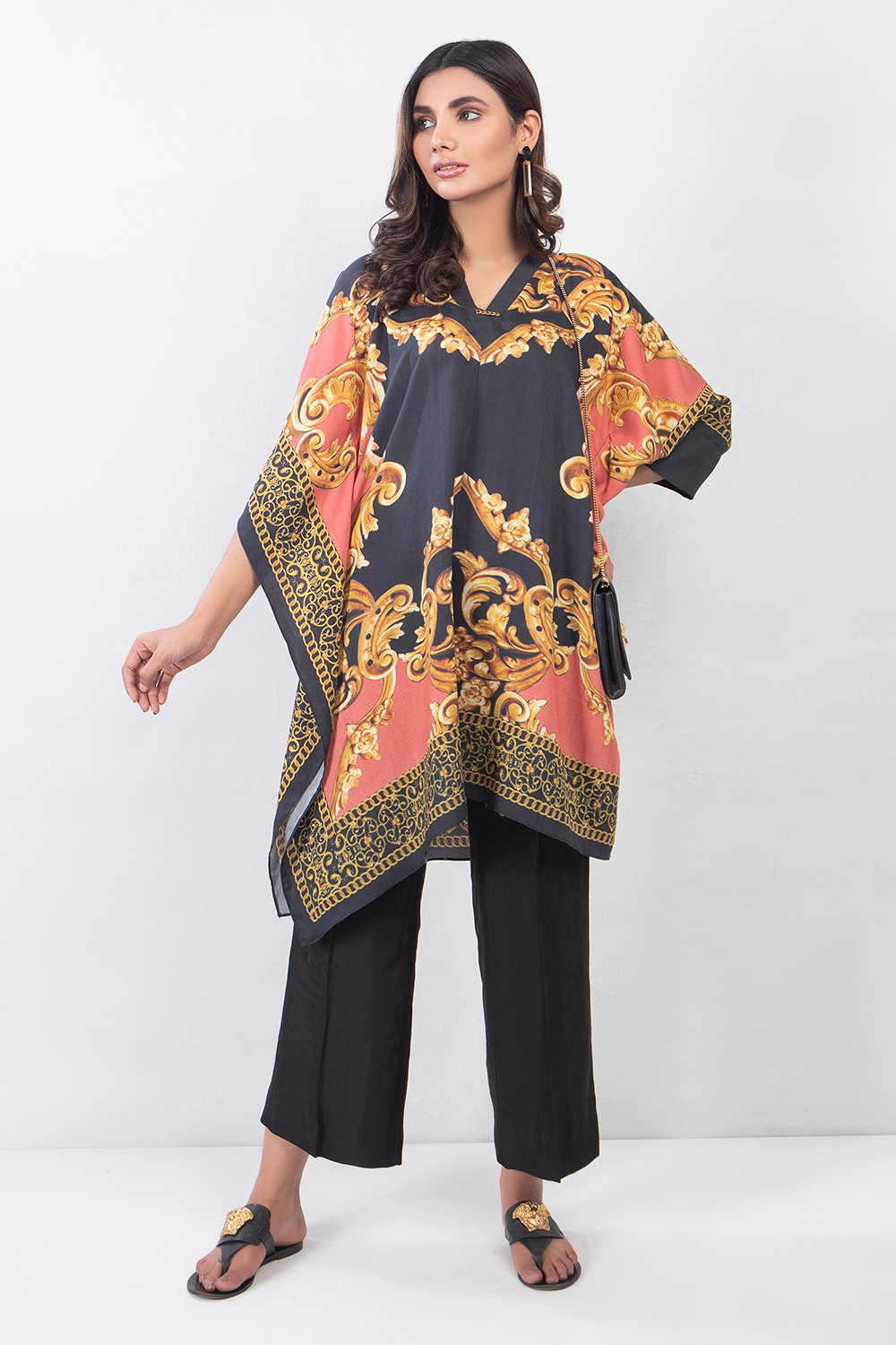 A stunning single piece digitally printed silk kaftan that is sure to be the head turner of the season! It can be styled both casually and formally to suit any occasion!