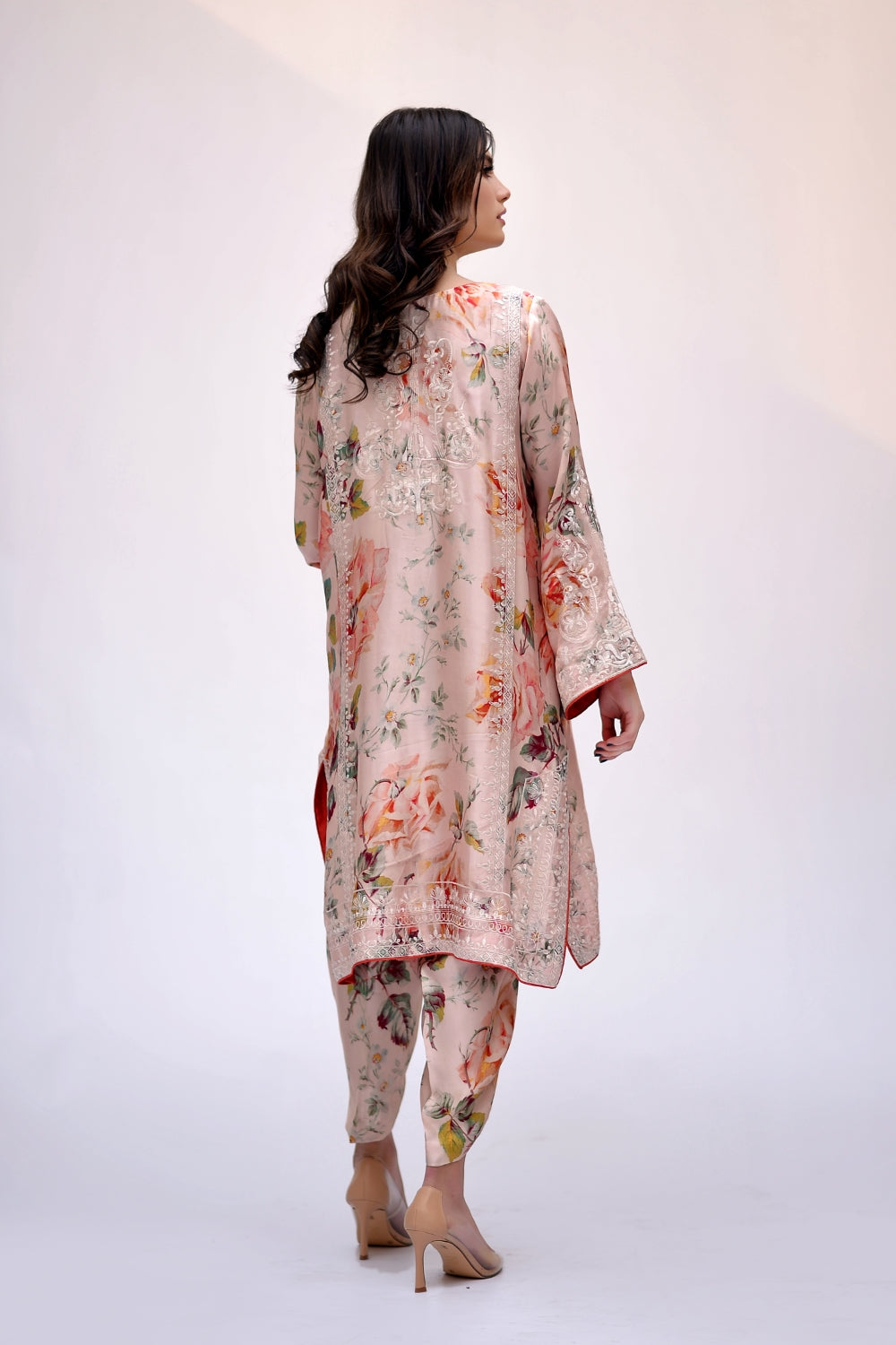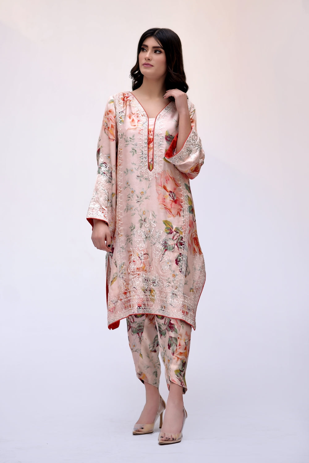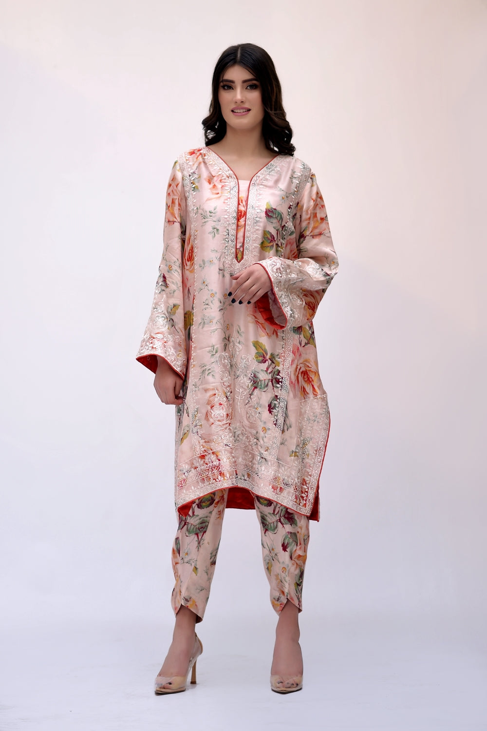 Two-piece embroidered silk suit 2 Piece (shirt and Trouser).