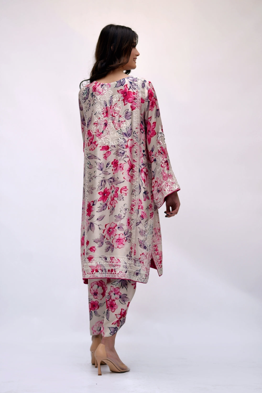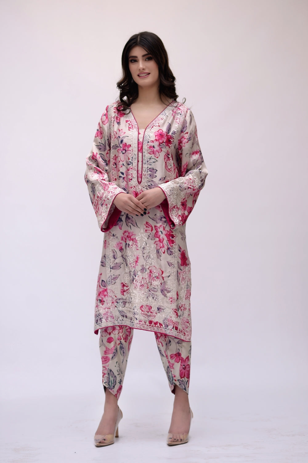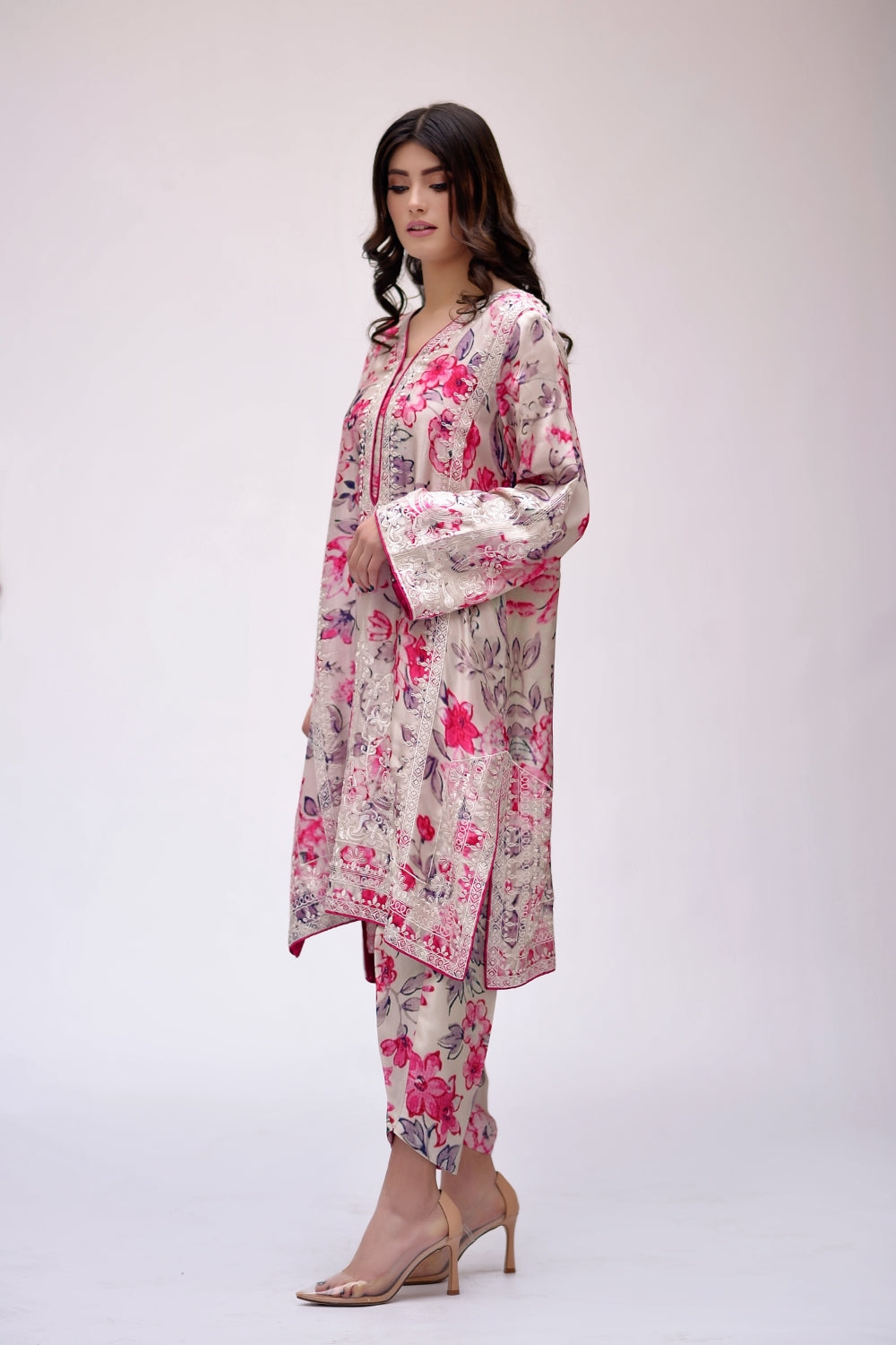 Two-piece embroidered silk suit 2 Piece (shirt and Trouser).
