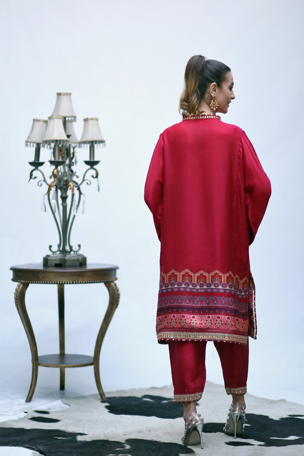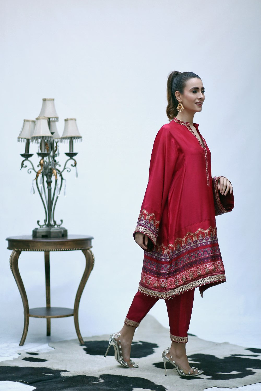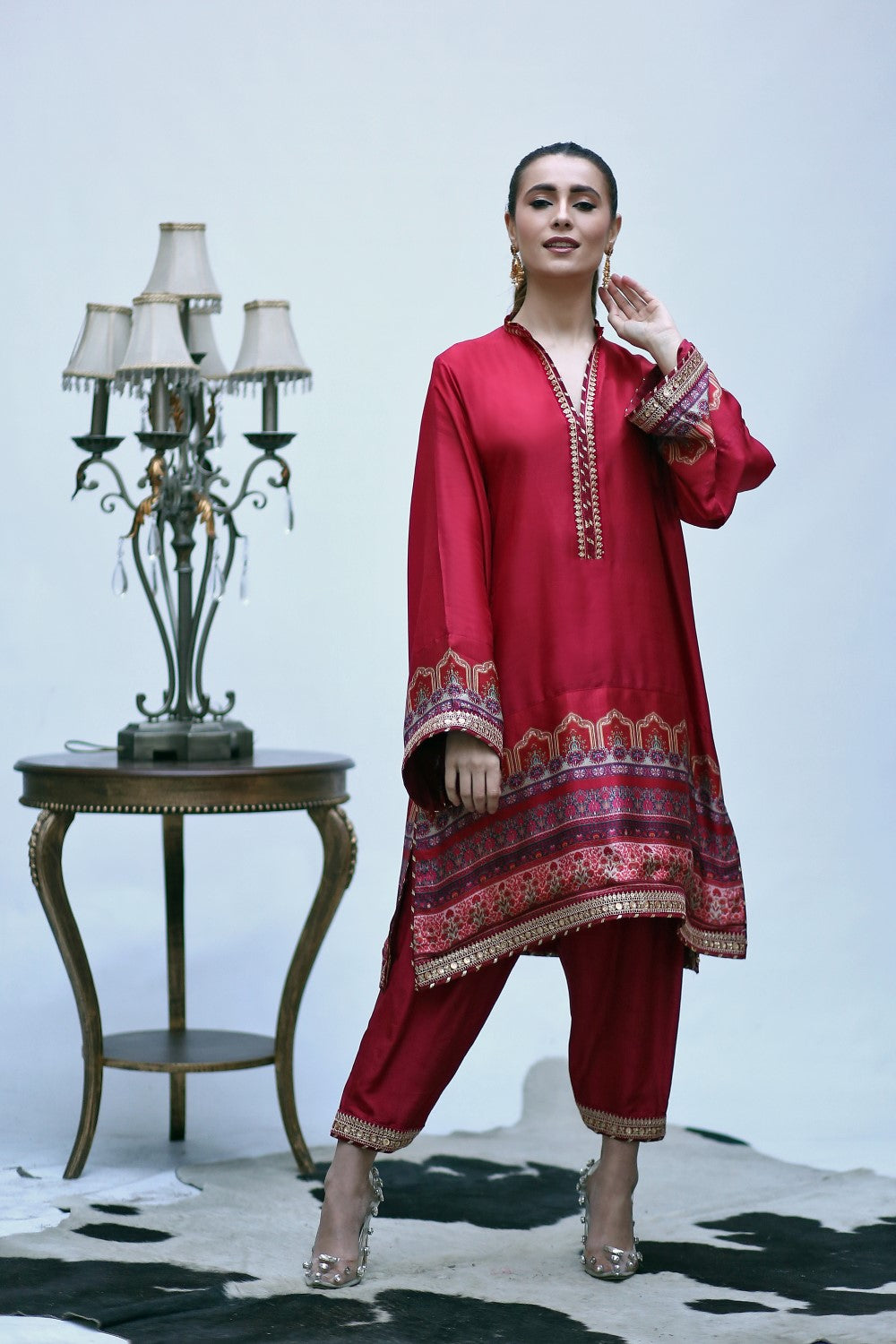 | Fabric: Silk Pieces: 2 pieces; Shirt,Trouser Embelish With Digital Silk Borders & Sequence Lace Note: The colours of the product may slightly vary due to different background lighting. |
