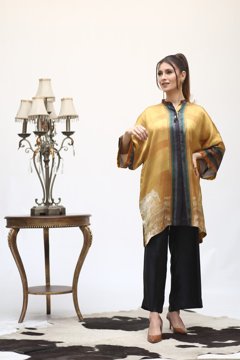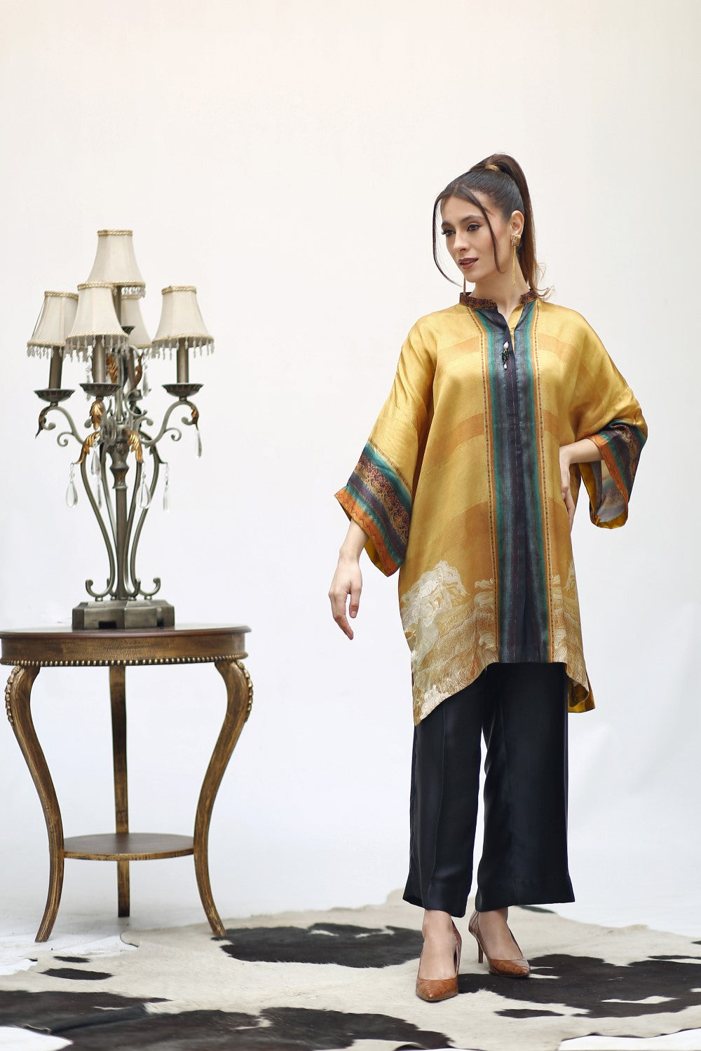 | Fabric: Digital Printed Silk Pieces: 1 piece; shirt Embelishment: Hanging Tassel Work Note: The colours of the product may slightly vary due to different background lighting. |