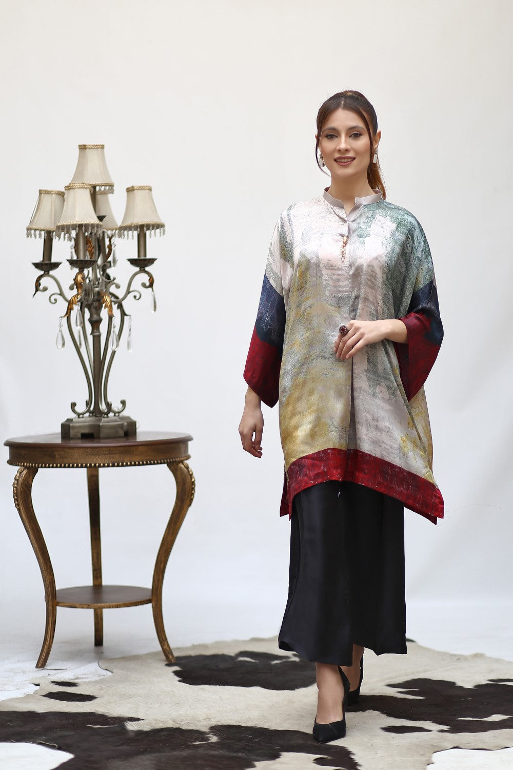 | Fabric: Digital Printed Silk Pieces: 1 piece; shirt Embelishment: Hanging Tassel Work Note: The colours of the product may slightly vary due to different background lighting. |
