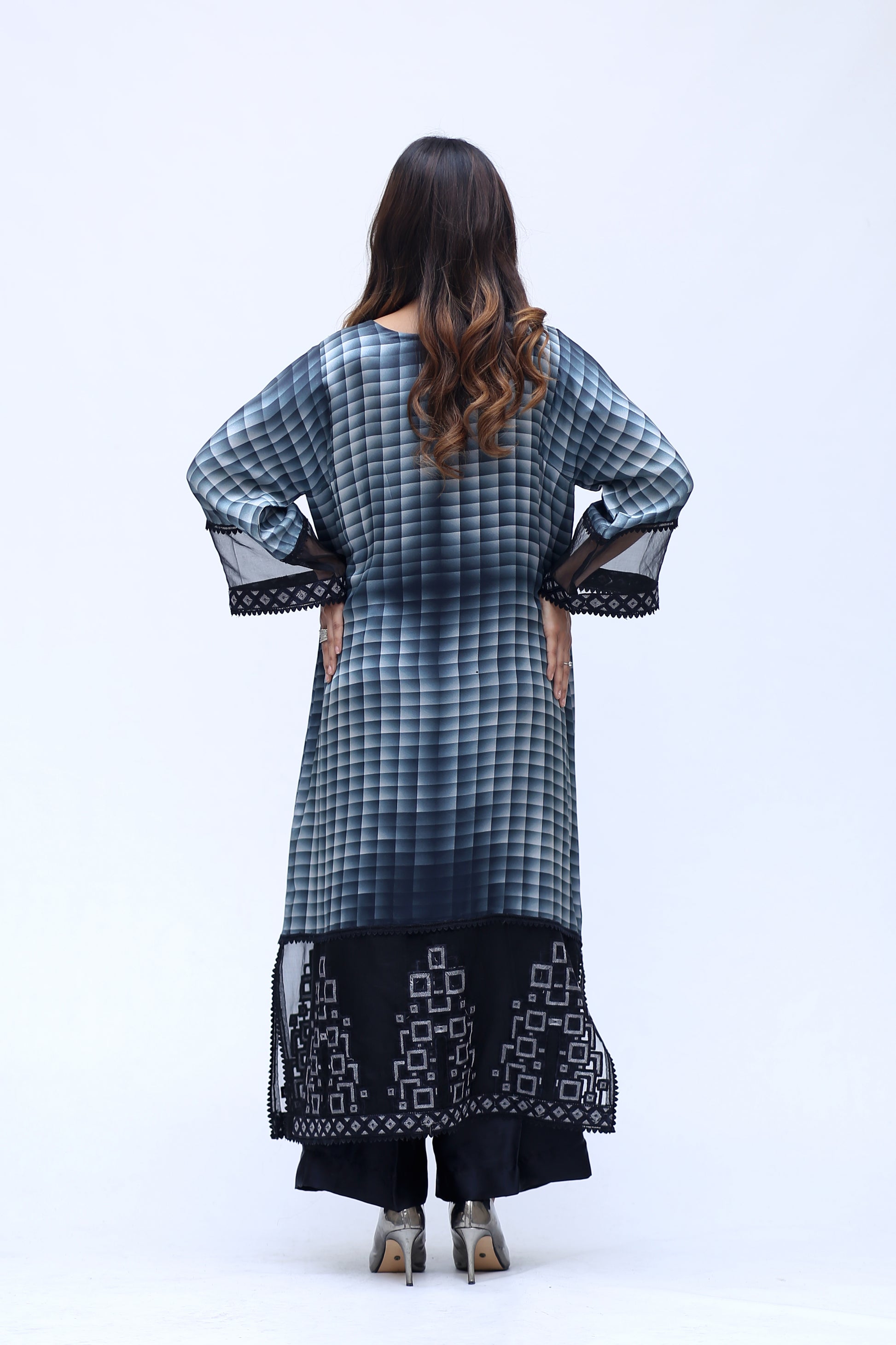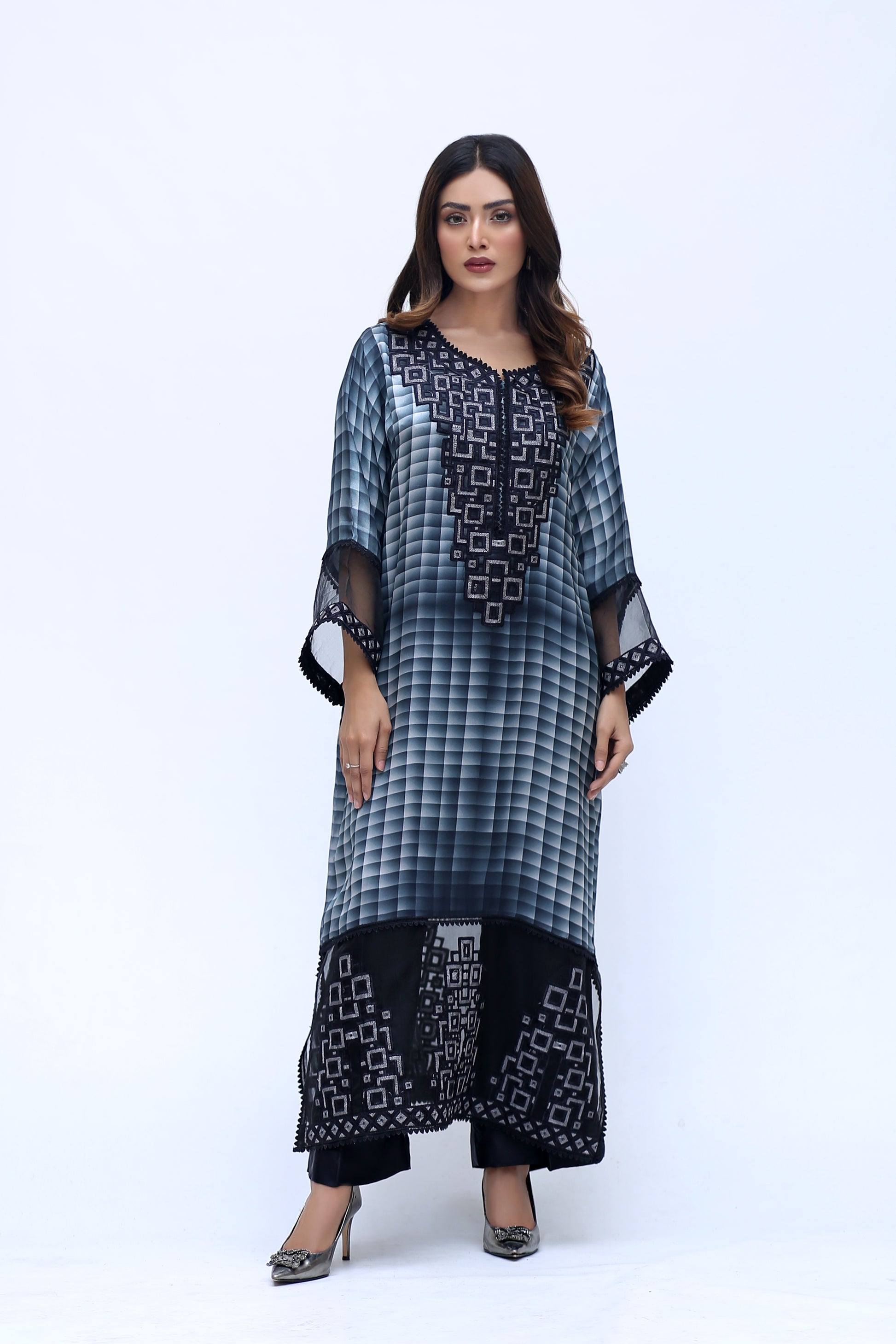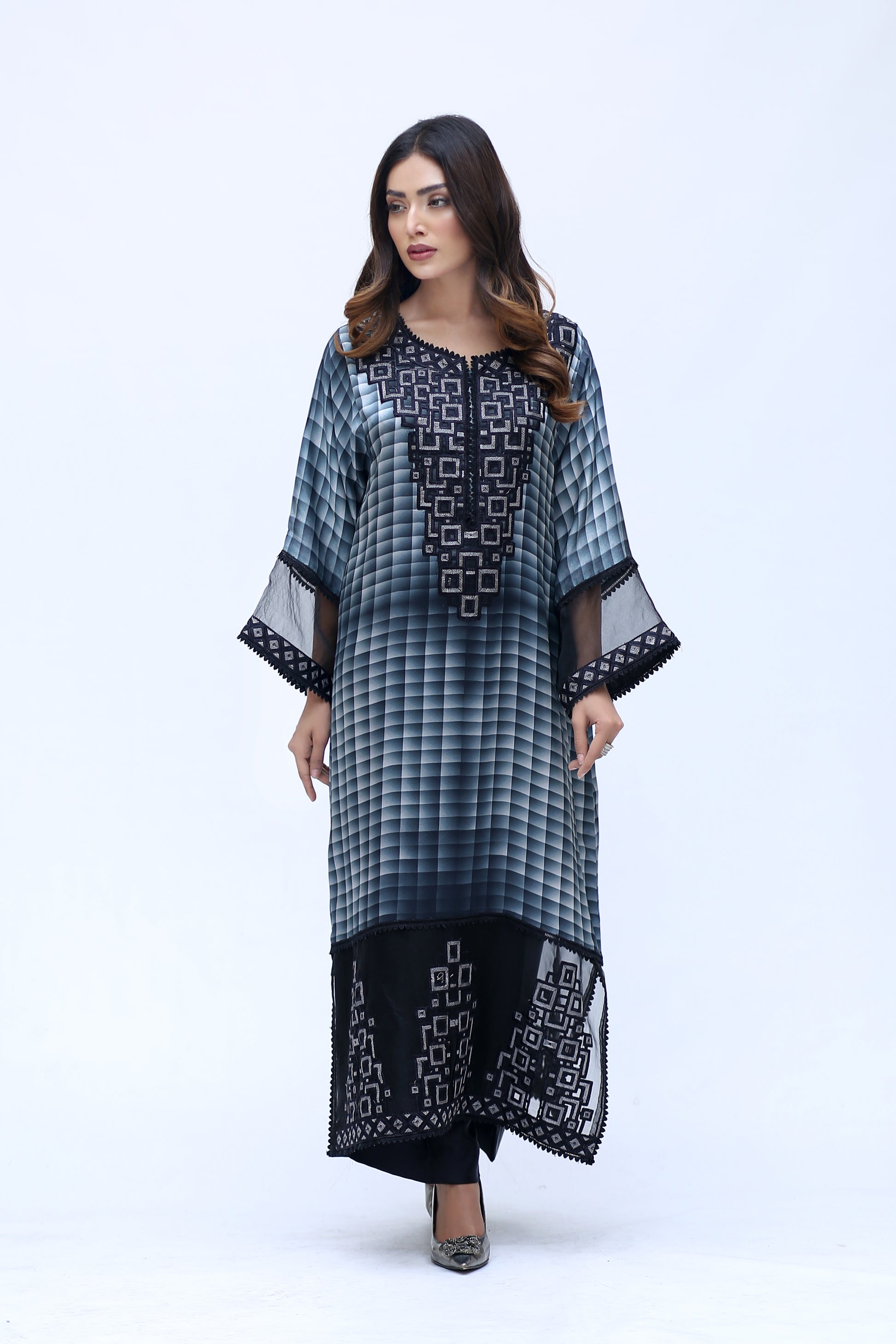 Embroidery Digital Printed Shirts With Lace & Organza Trims
