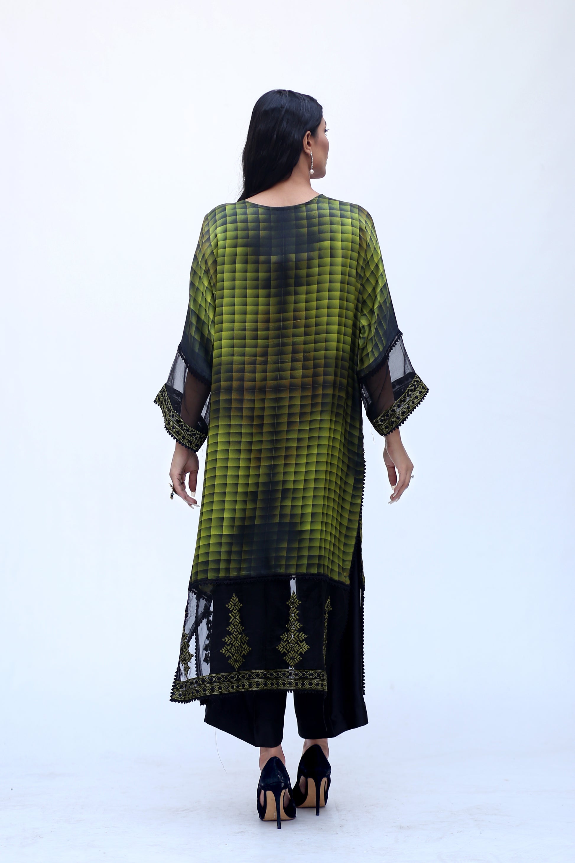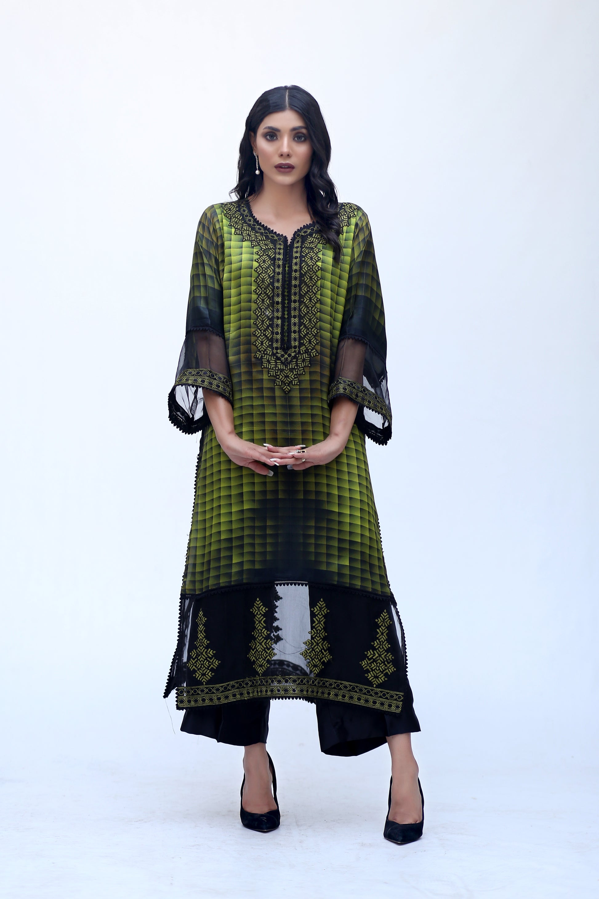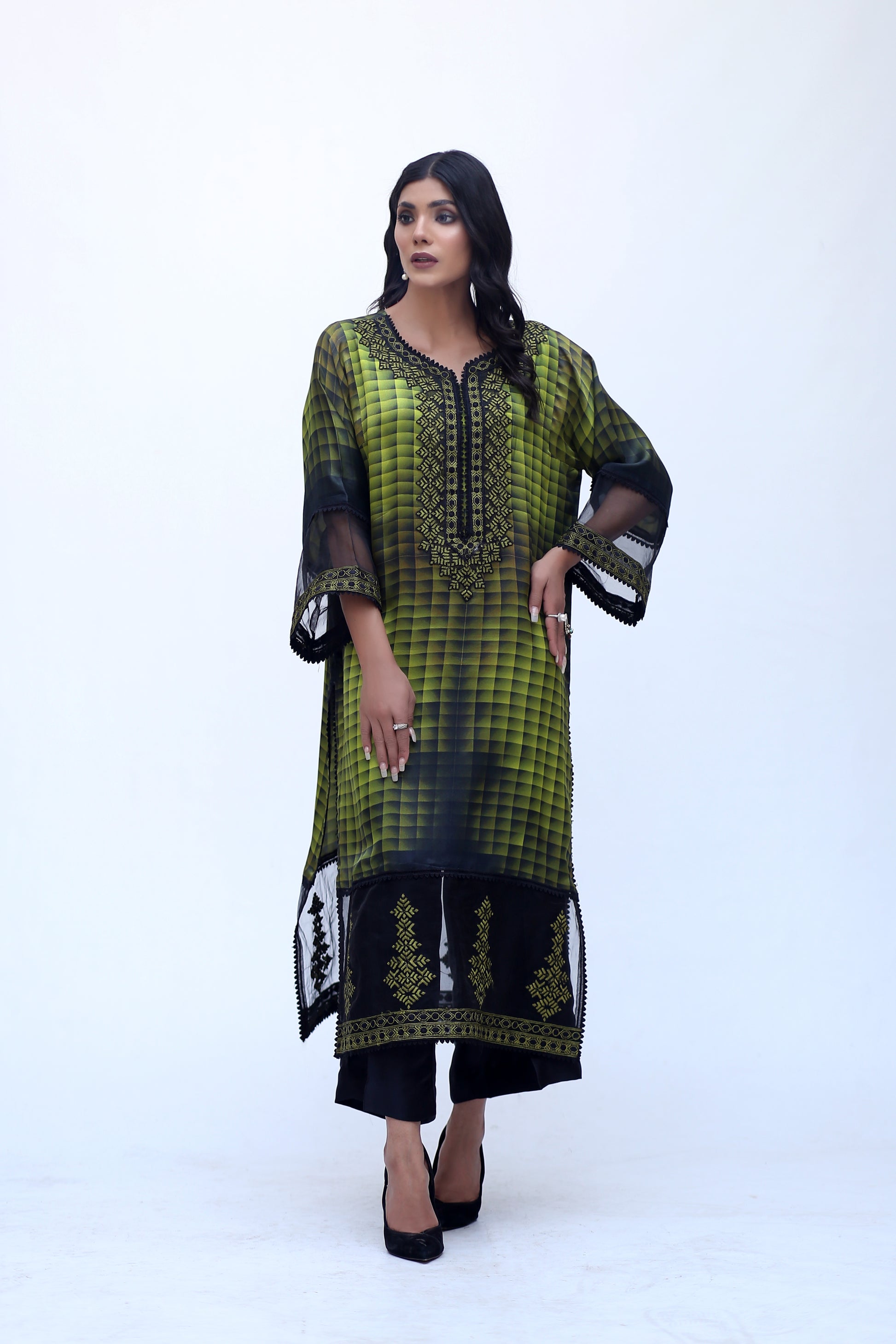 Embroidery Digital Printed Shirts With Lace & Organza Trims
