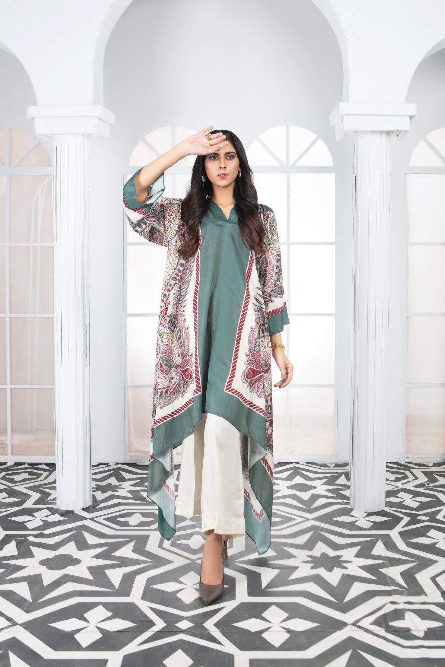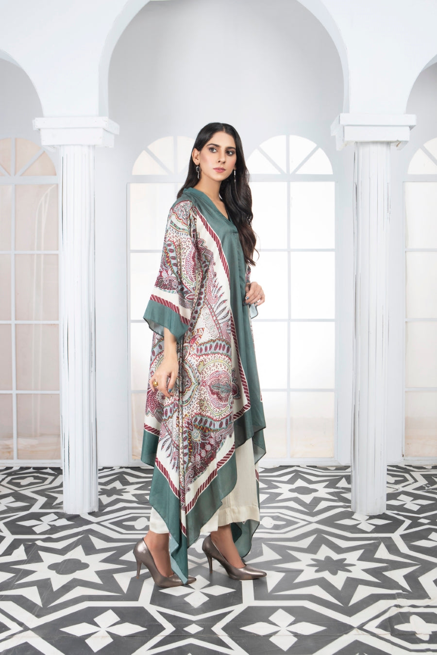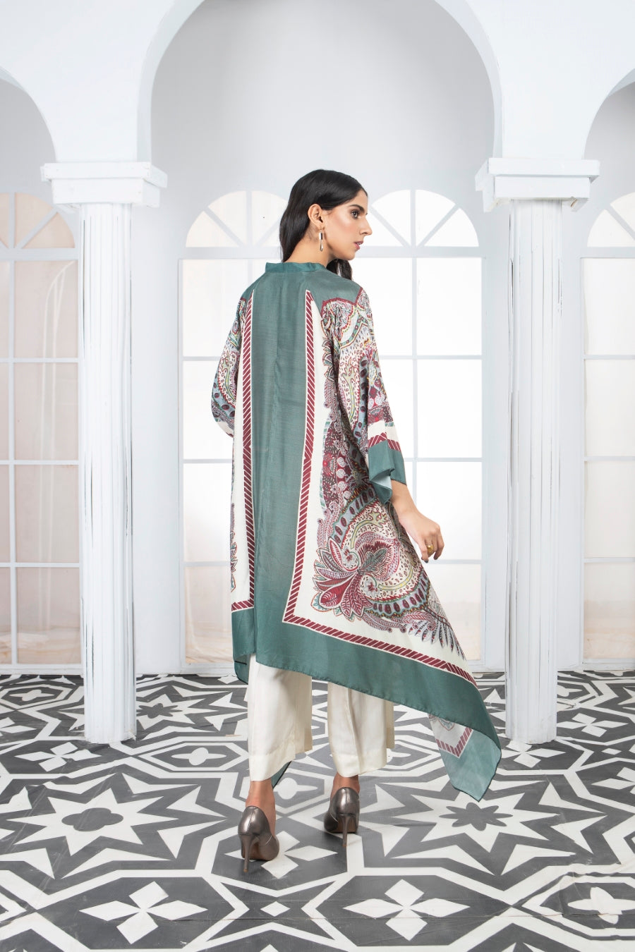 A stunning single piece bias cut kaftan shirt, made from the finest winter silk. The kaftan is adorned with digital prints that add to its elegance.