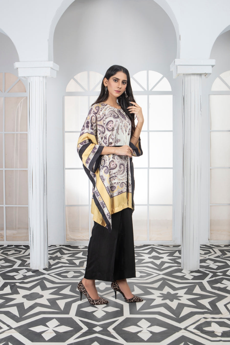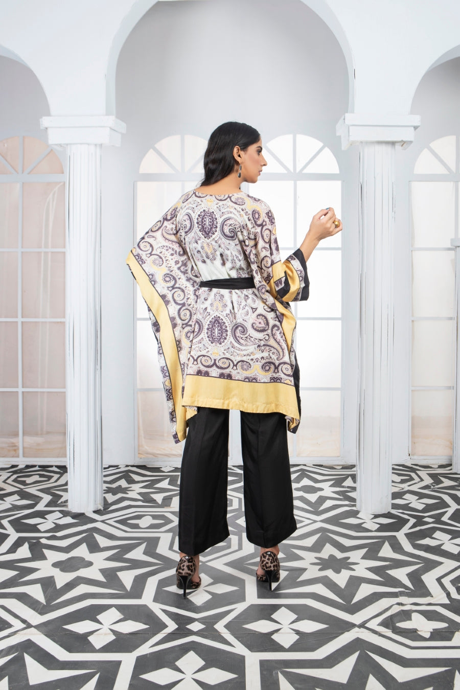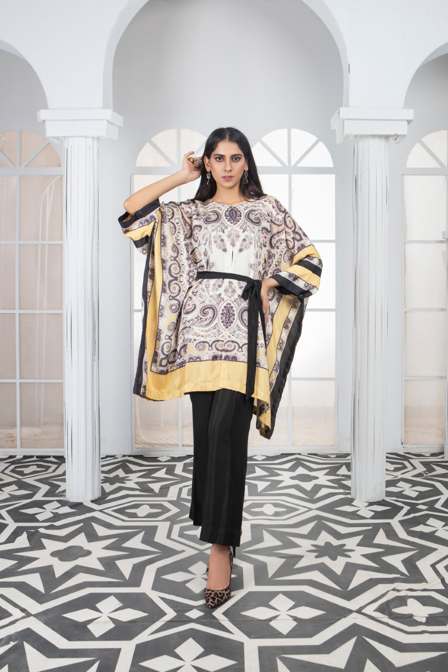 Short kaftans are an eternal fashion trend! Single piece front open short kaftans that can be styled with or without a belt. Crafted from winter silk and bearing modern digital prints.