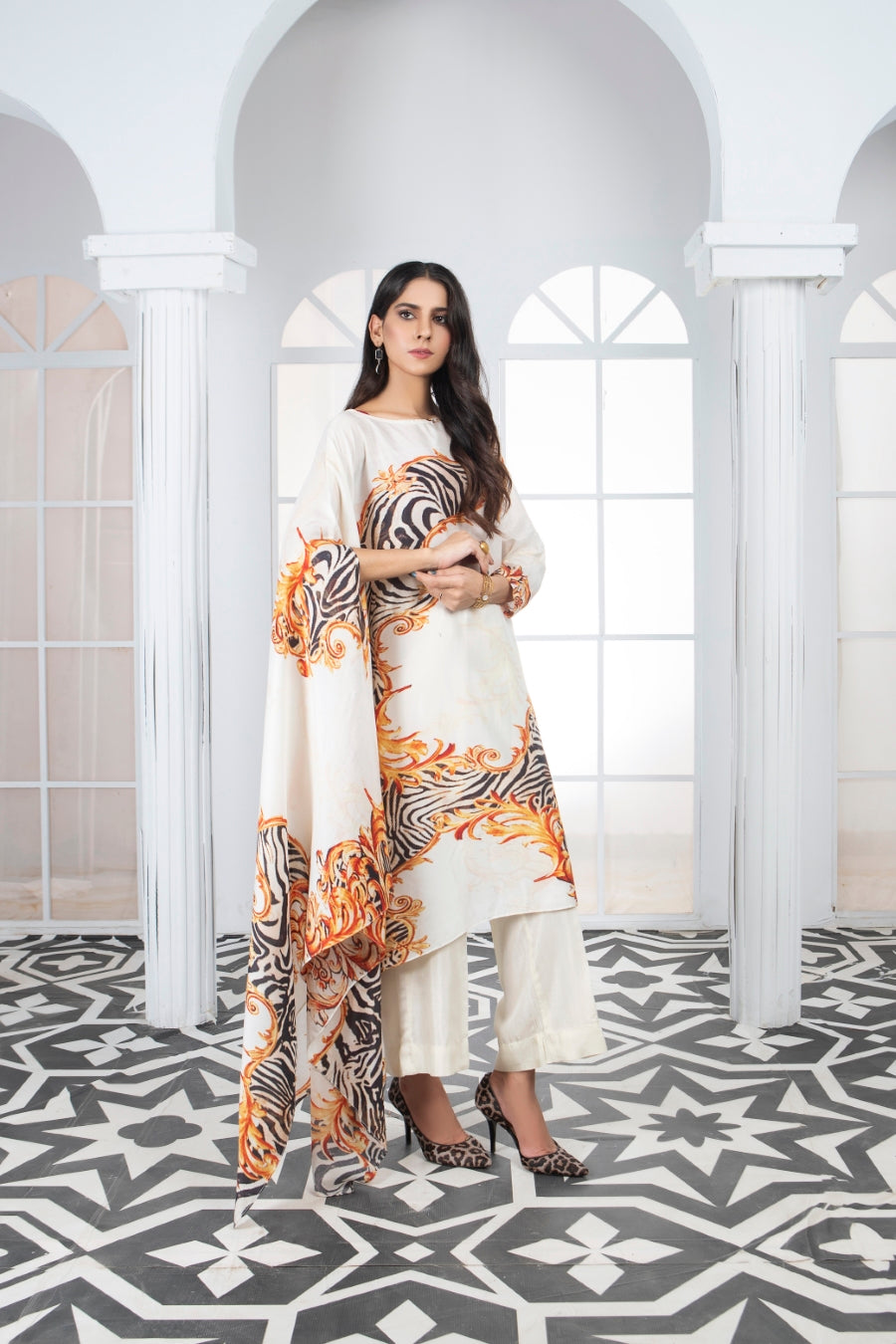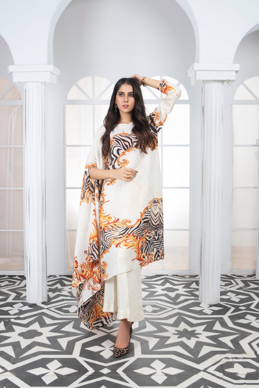 This digitally printed two-piece ensemble is an essential this season! Crafted from the finest winter silk, and adorned with modern digital prints.