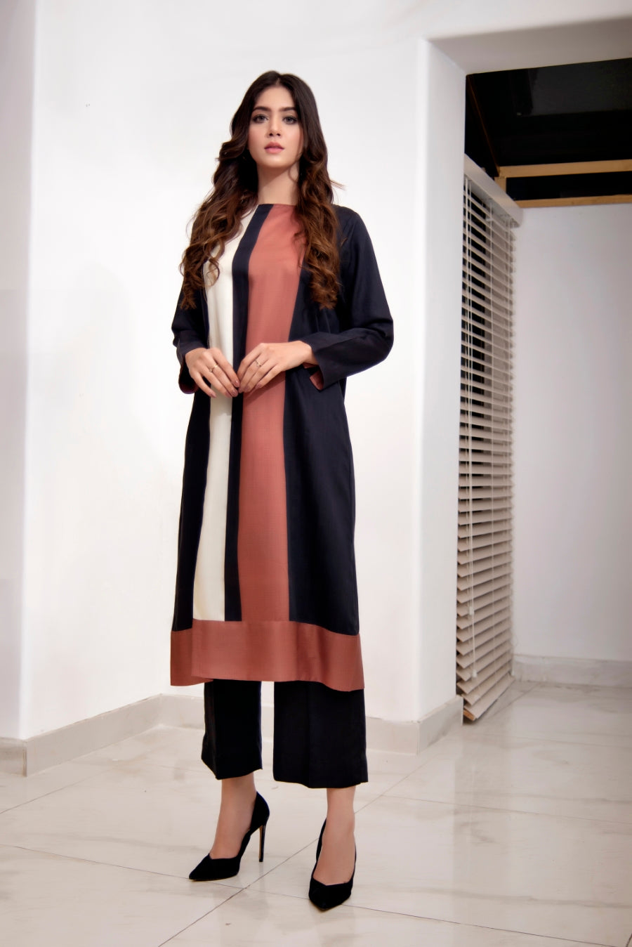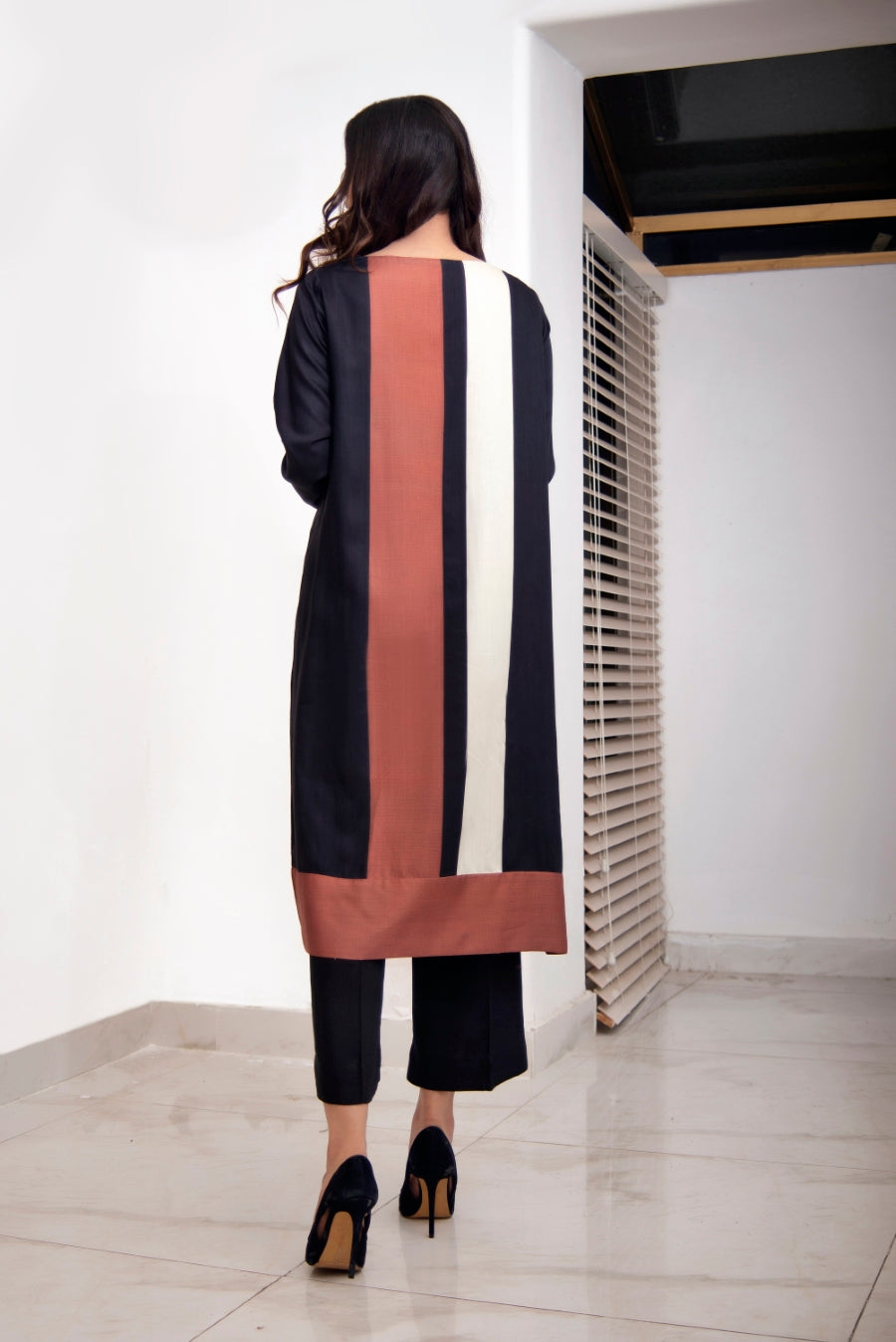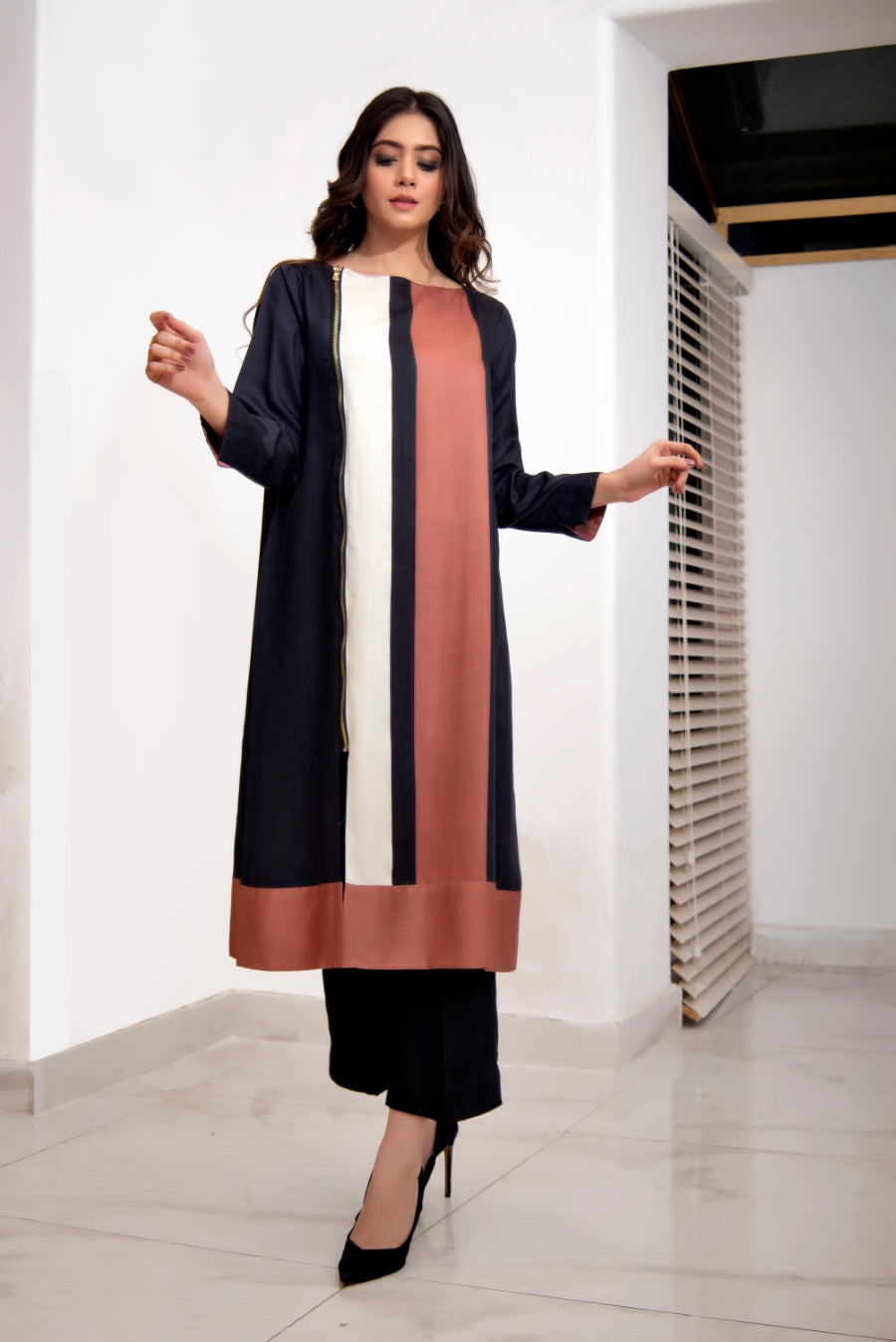A delicate and subtle three-toned viscose look that is sure to become your go-to dinner wear this season